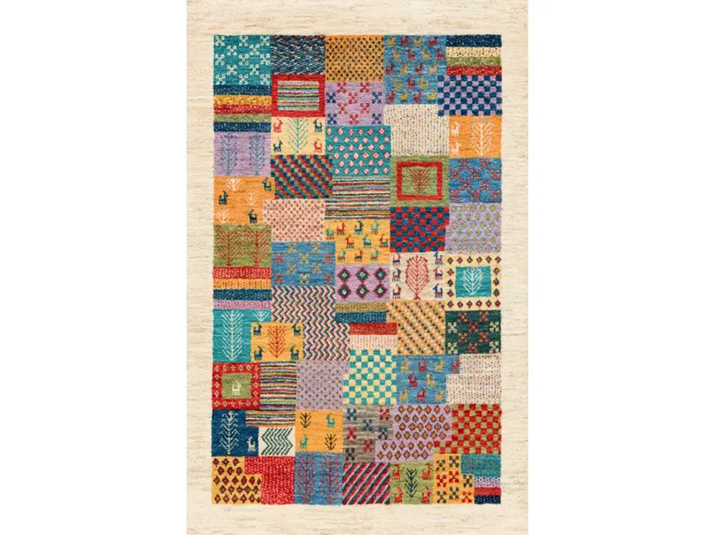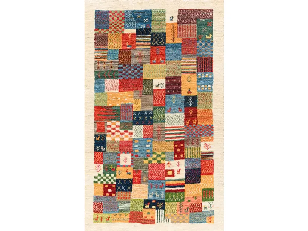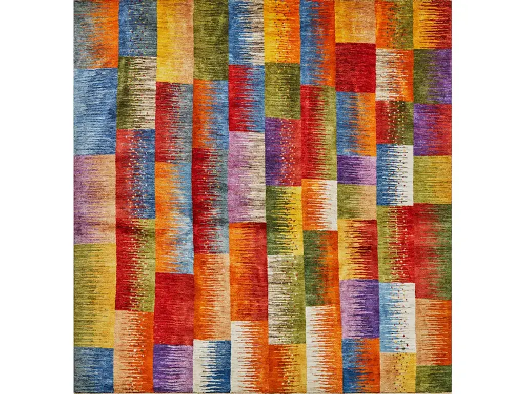 Squares Revisited 25 is a rectangular wool rug.Zollanvari Super Fine Gabbeh quality.The geometric designs of our Squares Revisited Collection are quintessentially Gabbeh. The execution of this design explores how different perspectives can be created in weave. Using Persian weaving knowhow and finding inspiration in Symbolist paintings, this design explores the endless possibilities of creating perspectives in weave. This playful and colourful interpretation of a highly traditional design is a modernist delight suitable for any style of interior where vibrancy and pizzazz are keywords.A Gabbeh is a hand-woven pile rug characterized by an abstract design that relies upon open fields of colour and playful geometry. Gabbehs are woven by tribal women and are principally used as ‘bedding blankets’ by the nomadic tribes of the Zagros Mountains of Iran, including Kurdish, Luri and Ghashgha’i people. Gabbehs are quintessentially Zollanvari and geometric designs are quintessential Gabbeh designs. Our Gabbehs come in different qualities. Our finest Gabbeh weave is Zollanvari Super Fine quality (referred to as Kashkuli after one of the Ghashgha’i tribes living in Fars province, southeast and northwest of Shiraz). Our Zollanvari Fine qualities (known as Amaleh after another Ghashgha’i tribe who produced high-quality artefacts for the Khans) are more coarsely knotted, but truly unique and individual in patterns and colour combinations.