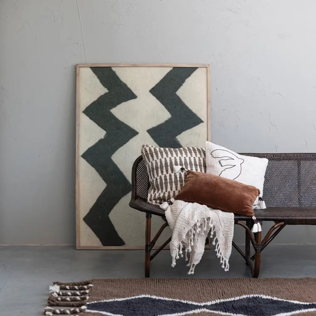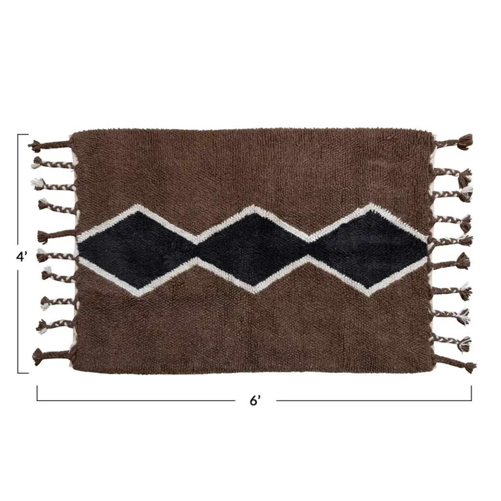 Storied Home Cotton And Wool Blend Rug With Pattern And Braided Tassels, Brown, Black, And Cream
