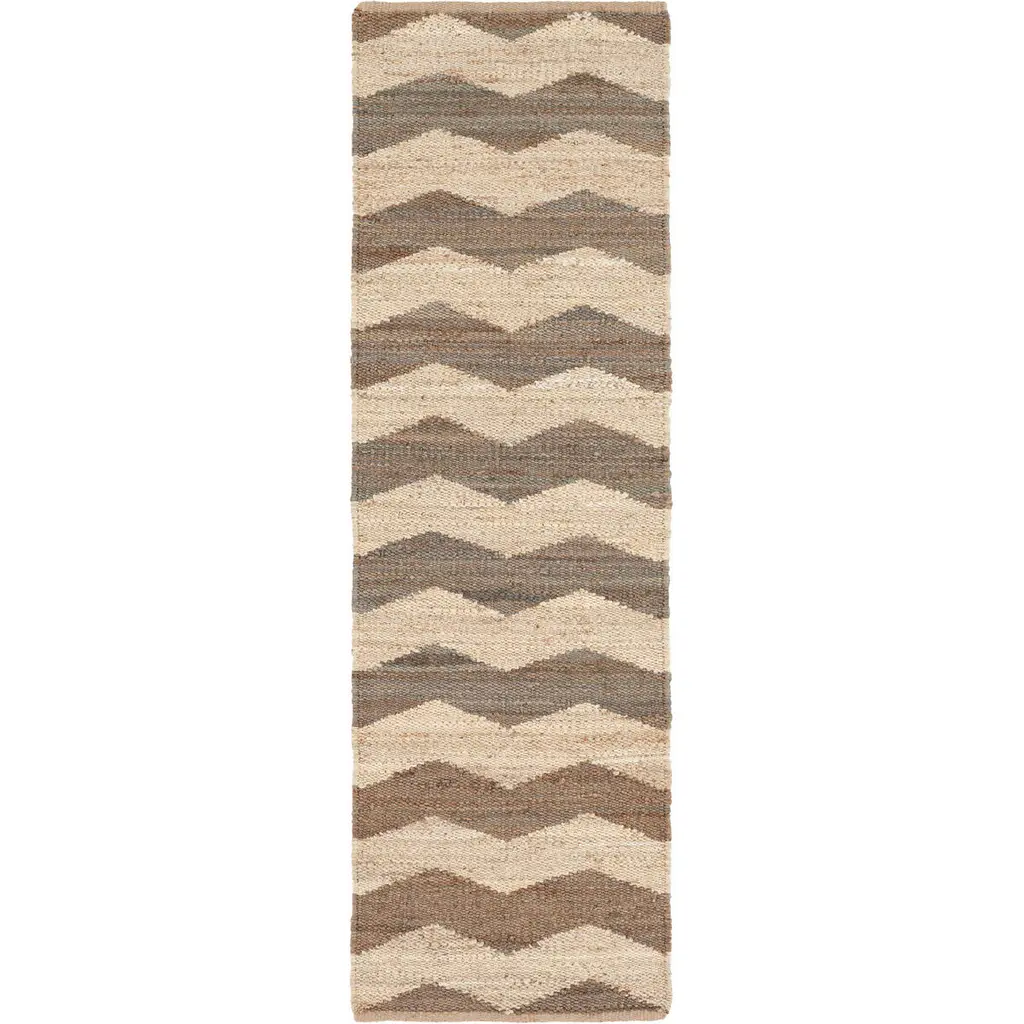 This boho inspired runner rug showcases supple tufted cotton with a 2 tone chevron pattern and decorative fringe; 95% Cotton, 5% Other Fiber; 96" L x 30" W