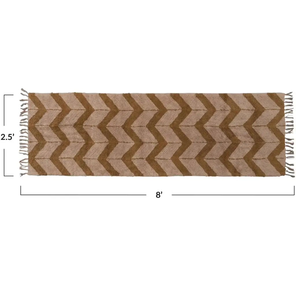 Storied Home Cotton Tufted Floor Runner With Chevron Pattern And Fringe, Brown And Beige