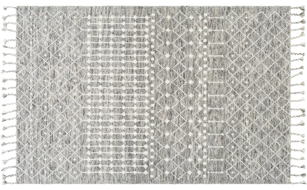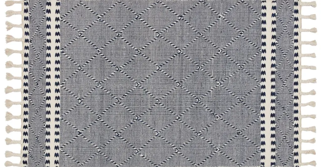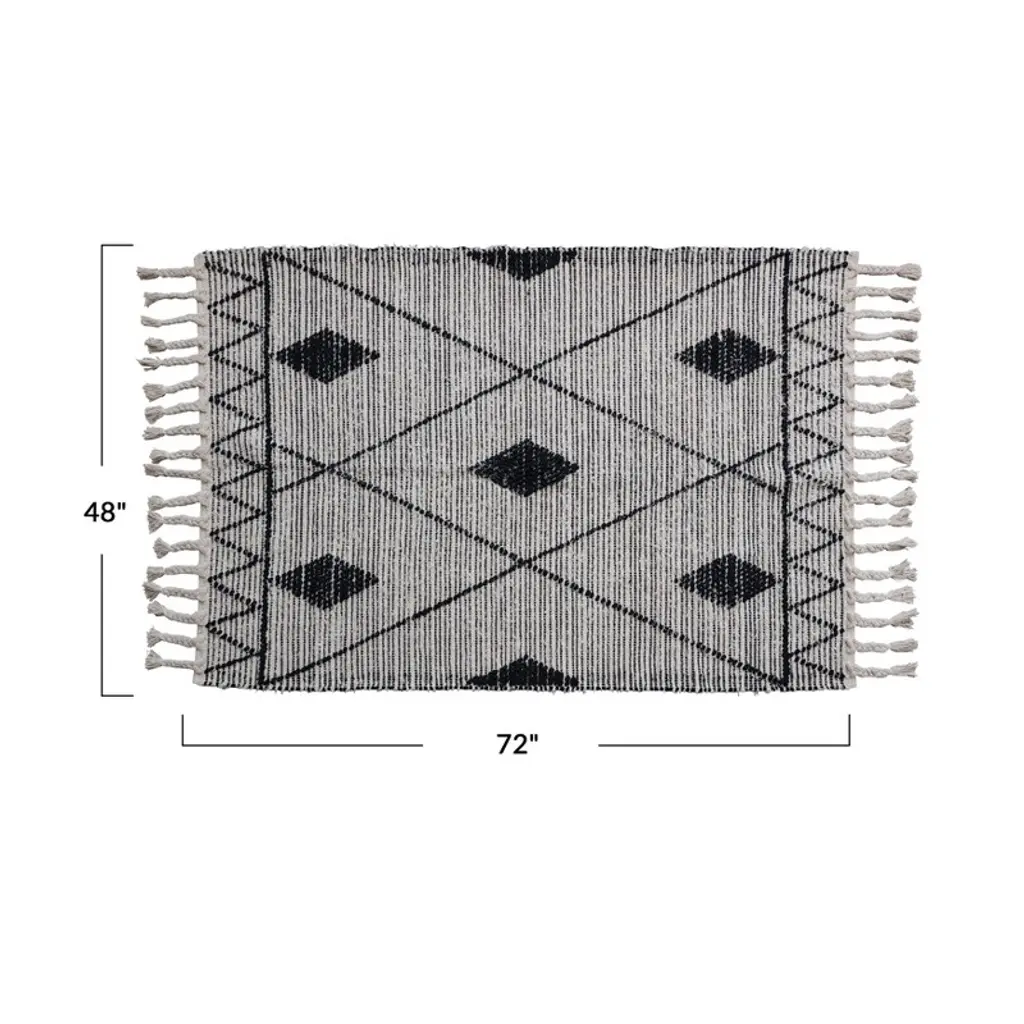 Storied Home Scandinavian Handwoven Cotton Rug With Geometric Pattern And Fringe, Black And White
