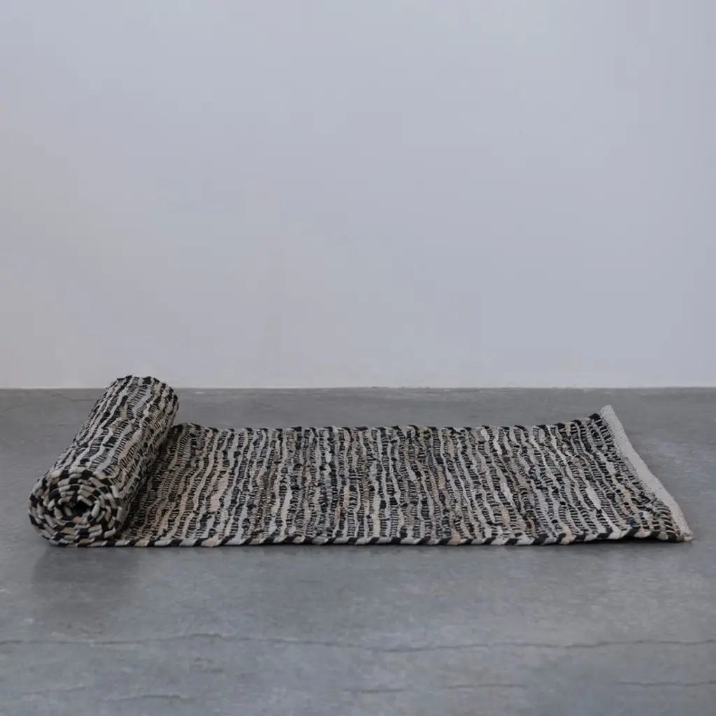 Storied Home Woven Cotton Chindi And Leather Floor Runner Rug, Multicolor