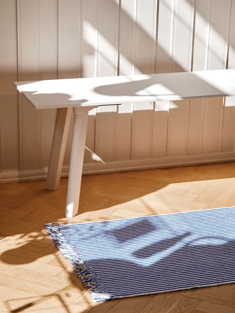 Named for its vertical stripes in contrasting colors, the Stripes and Stripes Rug’s clean graphic design creates the illusion of extra length. Made of durable cotton and finished with fringed ends, it’s available in a variety of sizes and color combinations.
