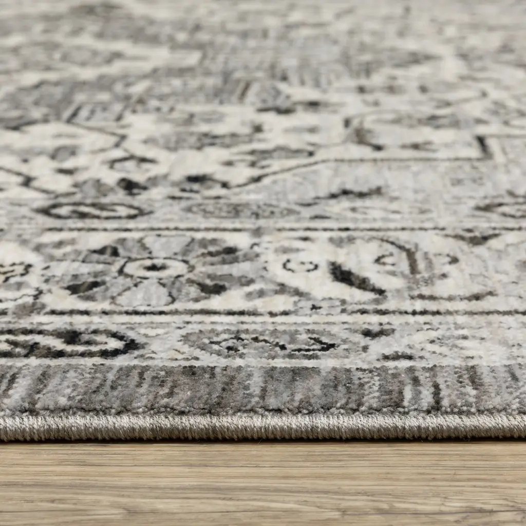 Experience the plush comfort of the Cádiz collection. These rugs are power-loomed using incredibly soft polyester yarns that are space-dyed in a range of neutral shades. The multi-level shrink polyester accents add texture to the global traditional designs, making them a stunning addition to any space.Features:Traditional, Persian and vintage style indoor area rugFeatures a center compass medallion patternPower-loomed of incredibly soft 100% polyester yarn with a fringed edgeFeatures a dense, low profile, million-point constructionColors include shades of grey, ivory, charcoal, beige, tanCleaning and Installation:If spills occur, blot as much of the stain as possible with a clean cloth. Use a small amount of mild soap and water to clean the area. If needed, rug and carpet cleaners that are safe for synthetic materials may be used. As with anything, use sparingly and in a small, inconspicuous area first to test results before applying to the entire rug. Blot dry with clean cloth. The use of a rug pad is recommended; initial creasing is normal, and these will generally fall out within a few days to a week; tightly reversing rolling the rug (pile side out) and leaving in warm area for several hours will aid in the removal of creases or lingering fold marks.Disclaimer:Due to the difference of monitor colors, some rug colors may vary slightly. We try to represent all rug colors as accurately as possible. All rug sizes are approximate. Sizes may vary +/- 1-3 inches due to weather, climate, and physical conditions at time of production and shipping.