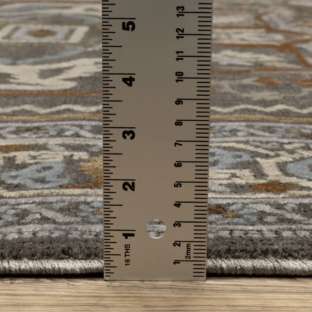 Elevate your decor with the Everly collection. These rugs feature space-dyed tri-color yarns in rich saturated jewel tones. The multi-level pile creates a soft hand with textural interest. With traditional Persian styling and a luxurious color palette, Everly will add a touch of opulence to your home. Power-loomed of polyester in the USA.Features:Traditional style indoor area rugFeatures an intricate center medallion patternPower-loomed from 100% polyesterFeatures multi-level spaced-dyed and tri-color yarnsRug color include shades of grey, blue, rust, beige, gold, ivoryCleaning and Care:If spills occur, blot as much of the stain as possible with a clean cloth. Use a small amount of mild soap and water to clean the area. If needed, rug and carpet cleaners that are safe for synthetic materials may be used. As with anything, use sparingly and in a small, inconspicuous area first to test results before applying to the entire rug. Blot dry with clean cloth. Installation & Set-up:The use of a rug pad is recommended; initial creasing is normal, and these will generally fall out within a few days to a week; tightly reversing rolling the rug (pile side out) and leaving in warm area for several hours will aid in the removal of creases or lingering fold marks.