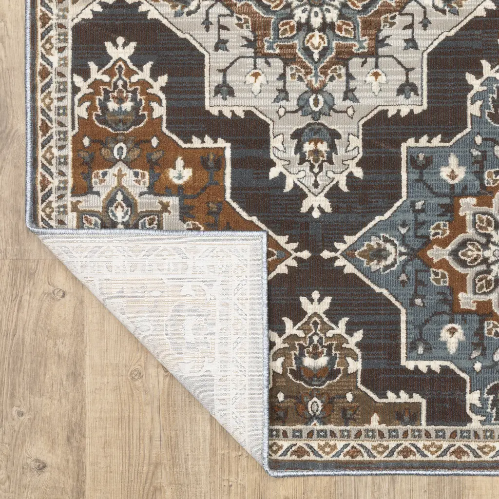 Elevate your decor with the Everly collection. These rugs feature space-dyed tri-color yarns in rich saturated jewel tones. The multi-level pile creates a soft hand with textural interest. With traditional Persian styling and a luxurious color palette, Everly will add a touch of opulence to your home. Power-loomed of polyester in the USA.Features:Traditional style indoor area rugFeatures a panel medallion pattern available in two color optionsPower-loomed from 100% polyesterFeatures multi-level spaced-dyed and tri-color yarnsRug color include shades of blue, rust, teal, brown, grey, beige, brown, ivoryCleaning and Care:If spills occur, blot as much of the stain as possible with a clean cloth. Use a small amount of mild soap and water to clean the area. If needed, rug and carpet cleaners that are safe for synthetic materials may be used. As with anything, use sparingly and in a small, inconspicuous area first to test results before applying to the entire rug. Blot dry with clean cloth. Installation & Set-up:The use of a rug pad is recommended; initial creasing is normal, and these will generally fall out within a few days to a week; tightly reversing rolling the rug (pile side out) and leaving in warm area for several hours will aid in the removal of creases or lingering fold marks.