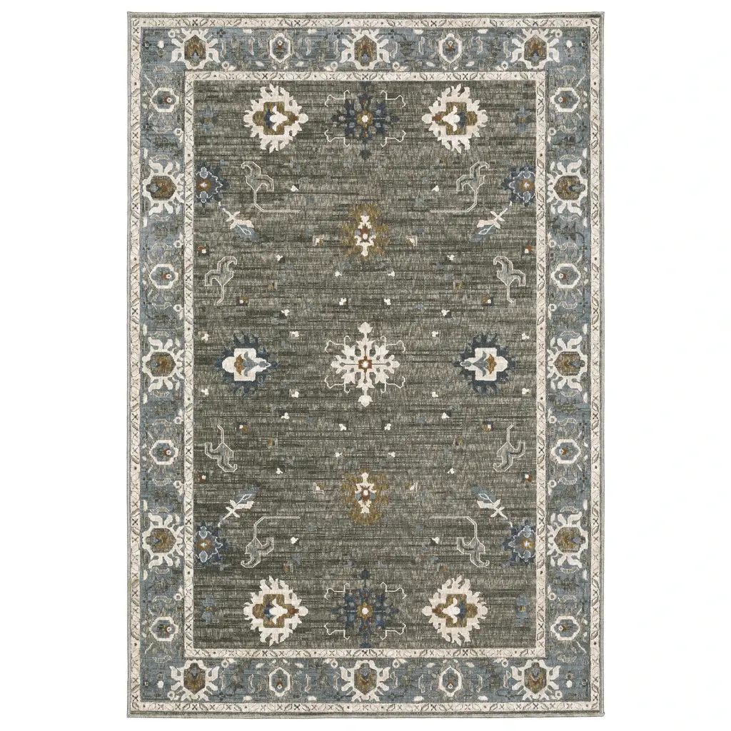 Elevate your decor with the Everly collection. These rugs feature space-dyed tri-color yarns in rich saturated jewel tones. The multi-level pile creates a soft hand with textural interest. With traditional Persian styling and a luxurious color palette, Everly will add a touch of opulence to your home. Power-loomed of polyester in the USA.Features:Traditional style indoor area rugFeatures a panel medallion pattern available in two color optionsPower-loomed from 100% polyesterFeatures multi-level spaced-dyed and tri-color yarnsRug color include shades of blue, rust, teal, brown, grey, beige, brown, ivoryCleaning and Care:If spills occur, blot as much of the stain as possible with a clean cloth. Use a small amount of mild soap and water to clean the area. If needed, rug and carpet cleaners that are safe for synthetic materials may be used. As with anything, use sparingly and in a small, inconspicuous area first to test results before applying to the entire rug. Blot dry with clean cloth. Installation & Set-up:The use of a rug pad is recommended; initial creasing is normal, and these will generally fall out within a few days to a week; tightly reversing rolling the rug (pile side out) and leaving in warm area for several hours will aid in the removal of creases or lingering fold marks.