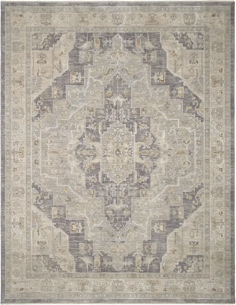 Elevate your decor with the Everly collection. These rugs feature space-dyed tri-color yarns in rich saturated jewel tones. The multi-level pile creates a soft hand with textural interest. With traditional Persian styling and a luxurious color palette, Everly will add a touch of opulence to your home. Power-loomed of polyester in the USA.Features:Traditional style indoor area rugFeatures an oriental, Persian inspired patternPower-loomed from 100% polyesterFeatures multi-level spaced-dyed and tri-color yarnsRug color include shades of grey, blue, teal, ivory, rust, brown, rustCleaning and Care:If spills occur, blot as much of the stain as possible with a clean cloth. Use a small amount of mild soap and water to clean the area. If needed, rug and carpet cleaners that are safe for synthetic materials may be used. As with anything, use sparingly and in a small, inconspicuous area first to test results before applying to the entire rug. Blot dry with clean cloth. Installation & Set-up:The use of a rug pad is recommended; initial creasing is normal, and these will generally fall out within a few days to a week; tightly reversing rolling the rug (pile side out) and leaving in warm area for several hours will aid in the removal of creases or lingering fold marks.