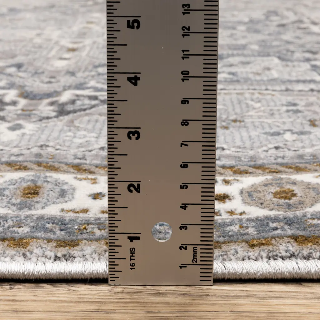 Elevate your decor with the Everly collection. These rugs feature space-dyed tri-color yarns in rich saturated jewel tones. The multi-level pile creates a soft hand with textural interest. With traditional Persian styling and a luxurious color palette, Everly will add a touch of opulence to your home. Power-loomed of polyester in the USA.Features:Traditional Persian inspired style indoor area rugFeatures an intricate center medallion patternPower-loomed from 100% polyesterFeatures multi-level spaced-dyed and tri-color yarnsRug color include shades of blue, grey, ivory, gold, beigeCleaning and Care:If spills occur, blot as much of the stain as possible with a clean cloth. Use a small amount of mild soap and water to clean the area. If needed, rug and carpet cleaners that are safe for synthetic materials may be used. As with anything, use sparingly and in a small, inconspicuous area first to test results before applying to the entire rug. Blot dry with clean cloth. Installation & Set-up:The use of a rug pad is recommended; initial creasing is normal, and these will generally fall out within a few days to a week; tightly reversing rolling the rug (pile side out) and leaving in warm area for several hours will aid in the removal of creases or lingering fold marks.