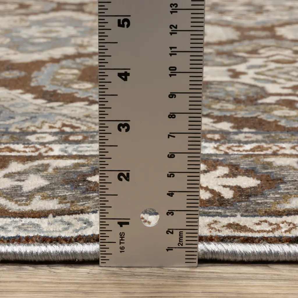 Elevate your decor with the Everly collection. These rugs feature space-dyed tri-color yarns in rich saturated jewel tones. The multi-level pile creates a soft hand with textural interest. With traditional Persian styling and a luxurious color palette, Everly will add a touch of opulence to your home. Power-loomed of polyester in the USA.Features:Traditional style indoor area rugFeatures a panel medallion pattern available in two color optionsPower-loomed from 100% polyesterFeatures multi-level spaced-dyed and tri-color yarnsRug color include shades of rust, blue, ivory, gold, blue, brown, beigeCleaning and Care:If spills occur, blot as much of the stain as possible with a clean cloth. Use a small amount of mild soap and water to clean the area. If needed, rug and carpet cleaners that are safe for synthetic materials may be used. As with anything, use sparingly and in a small, inconspicuous area first to test results before applying to the entire rug. Blot dry with clean cloth. Installation & Set-up:The use of a rug pad is recommended; initial creasing is normal, and these will generally fall out within a few days to a week; tightly reversing rolling the rug (pile side out) and leaving in warm area for several hours will aid in the removal of creases or lingering fold marks.