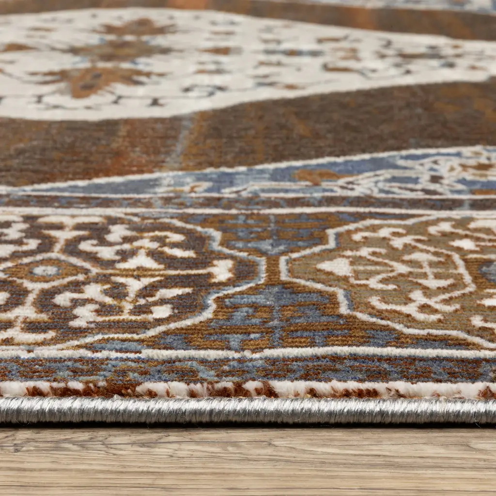 Elevate your decor with the Everly collection. These rugs feature space-dyed tri-color yarns in rich saturated jewel tones. The multi-level pile creates a soft hand with textural interest. With traditional Persian styling and a luxurious color palette, Everly will add a touch of opulence to your home. Power-loomed of polyester in the USA.Features:Traditional to Bohemian style indoor area rugFeatures an intricate center medallion patternPower-loomed from 100% polyesterFeatures multi-level spaced-dyed and tri-color yarnsRug color include shades of rust, blue, ivory, brown, blue, tealCleaning and Care:If spills occur, blot as much of the stain as possible with a clean cloth. Use a small amount of mild soap and water to clean the area. If needed, rug and carpet cleaners that are safe for synthetic materials may be used. As with anything, use sparingly and in a small, inconspicuous area first to test results before applying to the entire rug. Blot dry with clean cloth. Installation & Set-up:The use of a rug pad is recommended; initial creasing is normal, and these will generally fall out within a few days to a week; tightly reversing rolling the rug (pile side out) and leaving in warm area for several hours will aid in the removal of creases or lingering fold marks.