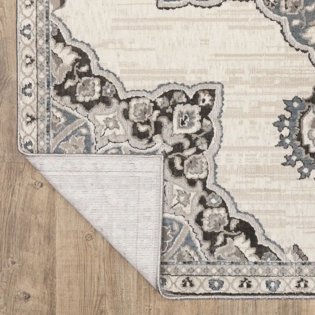 Elevate your decor with the Everly collection. These rugs feature space-dyed tri-color yarns in rich saturated jewel tones. The multi-level pile creates a soft hand with textural interest. With traditional Persian styling and a luxurious color palette, Everly will add a touch of opulence to your home. Power-loomed of polyester in the USA.Features:Traditional Bohemian style indoor area rugFeaturing an intricate large center medallion patternPower-loomed from 100% polyesterFeatures multi-level spaced-dyed and tri-color yarnsRug color include shades of ivory, pale blue, brown, beige, grey, tealCleaning and Care:If spills occur, blot as much of the stain as possible with a clean cloth. Use a small amount of mild soap and water to clean the area. If needed, rug and carpet cleaners that are safe for synthetic materials may be used. As with anything, use sparingly and in a small, inconspicuous area first to test results before applying to the entire rug. Blot dry with clean cloth. Installation & Set-up:The use of a rug pad is recommended; initial creasing is normal, and these will generally fall out within a few days to a week; tightly reversing rolling the rug (pile side out) and leaving in warm area for several hours will aid in the removal of creases or lingering fold marks.
