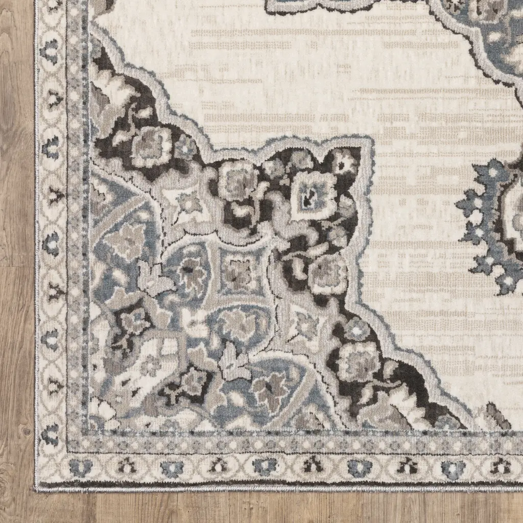Elevate your decor with the Everly collection. These rugs feature space-dyed tri-color yarns in rich saturated jewel tones. The multi-level pile creates a soft hand with textural interest. With traditional Persian styling and a luxurious color palette, Everly will add a touch of opulence to your home. Power-loomed of polyester in the USA.Features:Traditional Bohemian style indoor area rugFeaturing an intricate large center medallion patternPower-loomed from 100% polyesterFeatures multi-level spaced-dyed and tri-color yarnsRug color include shades of ivory, pale blue, brown, beige, grey, tealCleaning and Care:If spills occur, blot as much of the stain as possible with a clean cloth. Use a small amount of mild soap and water to clean the area. If needed, rug and carpet cleaners that are safe for synthetic materials may be used. As with anything, use sparingly and in a small, inconspicuous area first to test results before applying to the entire rug. Blot dry with clean cloth. Installation & Set-up:The use of a rug pad is recommended; initial creasing is normal, and these will generally fall out within a few days to a week; tightly reversing rolling the rug (pile side out) and leaving in warm area for several hours will aid in the removal of creases or lingering fold marks.