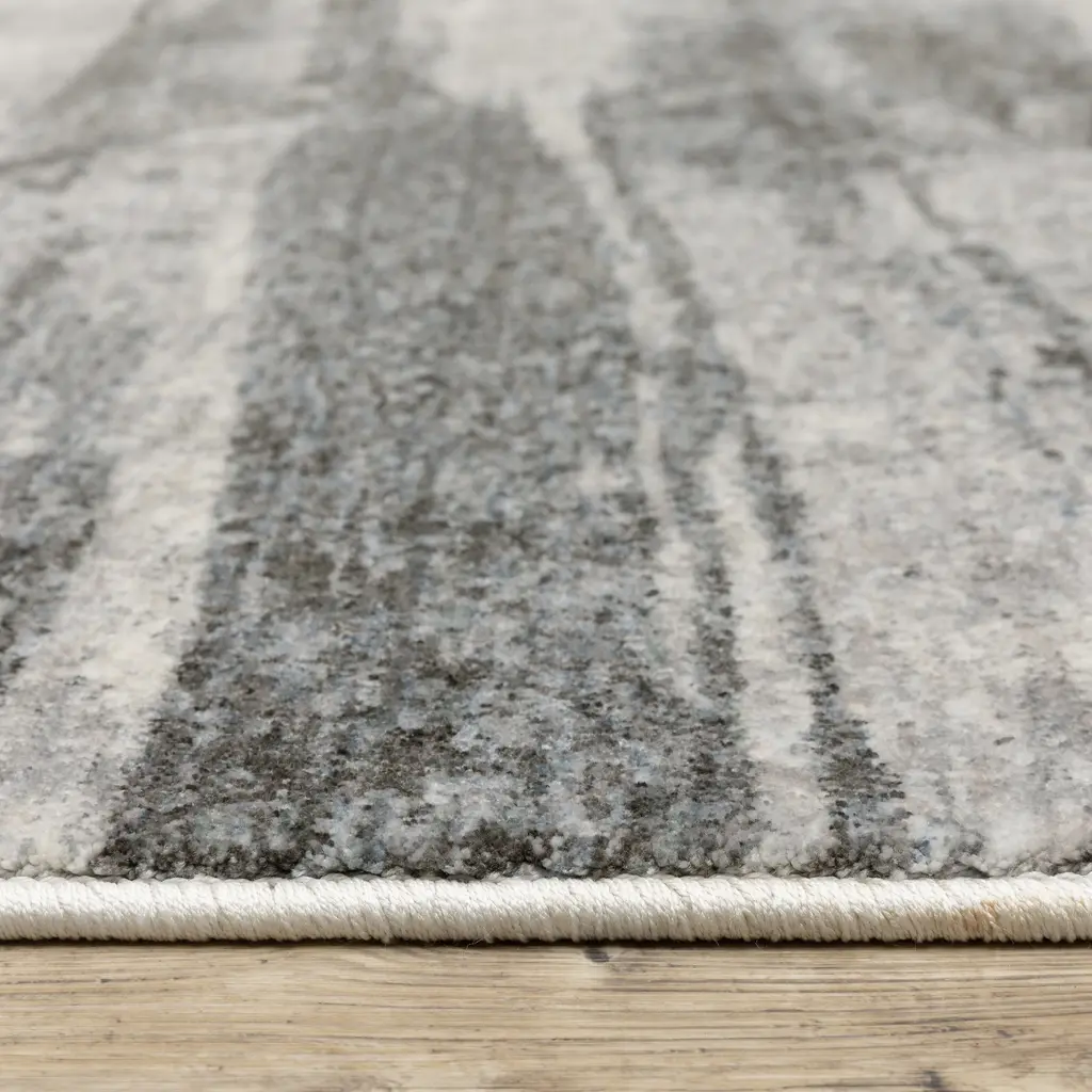 Embrace modern elegance with the Hendrix collection. These rugs feature bold jewel tones and warm neutral colors in soft contemporary abstract designs. Power-loomed of space-dyed polyester and finished with a short fringe edge. The high-density, low profile construction of the Hendrix collection is perfect for a busy stylish household.Features:Modern, contemporary style indoor area rugFeatures a distressed abstract patternPower-loomed from 100% polyesterHigh density space-dyed polyester finished with a short fringe edgeRug colors include grey, ivory, charcoal, light grey, blueCleaning and Care:If spills occur, blot as much of the stain as possible with a clean cloth. Use a small amount of mild soap and water to clean the area. If needed, rug and carpet cleaners that are safe for synthetic materials may be used. As with anything, use sparingly and in a small, inconspicuous area first to test results before applying to the entire rug. Blot dry with clean cloth. Installation & Set-up:The use of a rug pad is recommended; initial creasing is normal, and these will generally fall out within a few days to a week; tightly reversing rolling the rug (pile side out) and leaving in warm area for several hours will aid in the removal of creases or lingering fold marks.