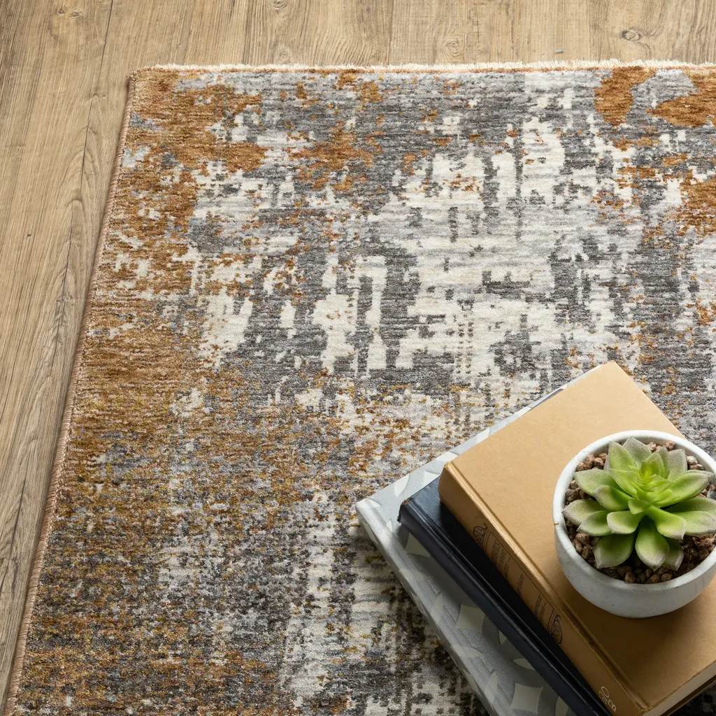 Embrace modern elegance with the Hendrix collection. These rugs feature bold jewel tones and warm neutral colors in soft contemporary abstract designs. Power-loomed of space-dyed polyester and finished with a short fringe edge. The high-density, low profile construction of the Hendrix collection is perfect for a busy stylish household.Features:Modern, contemporary style indoor area rugFeatures a distressed abstract patternPower-loomed from 100% polyesterHigh density space-dyed polyester finished with a short fringe edgeRug colors include grey, ivory, gold, green, brown, tanCleaning and Care:If spills occur, blot as much of the stain as possible with a clean cloth. Use a small amount of mild soap and water to clean the area. If needed, rug and carpet cleaners that are safe for synthetic materials may be used. As with anything, use sparingly and in a small, inconspicuous area first to test results before applying to the entire rug. Blot dry with clean cloth. Installation & Set-up:The use of a rug pad is recommended; initial creasing is normal, and these will generally fall out within a few days to a week; tightly reversing rolling the rug (pile side out) and leaving in warm area for several hours will aid in the removal of creases or lingering fold marks.