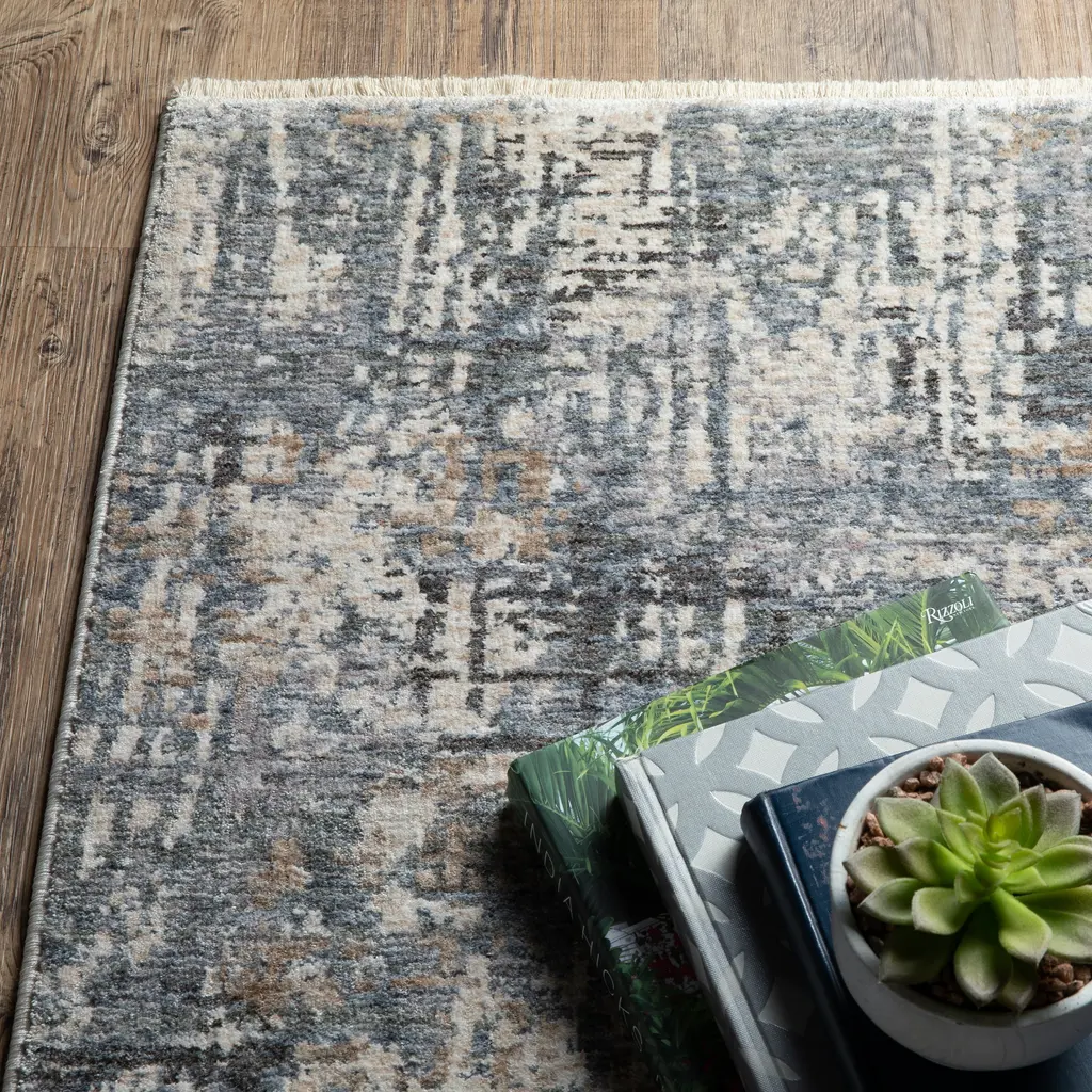 Embrace modern elegance with the Hendrix collection. These rugs feature bold jewel tones and warm neutral colors in soft contemporary abstract designs. Power-loomed of space-dyed polyester and finished with a short fringe edge. The high-density, low profile construction of the Hendrix collection is perfect for a busy stylish household.Features:Modern, contemporary style indoor area rugFeatures a distressed abstract patternPower-loomed from 100% polyesterHigh density space-dyed polyester finished with a short fringe edgeRug colors include beige, blue, grey, tan, sage, charcoalCleaning and Care:If spills occur, blot as much of the stain as possible with a clean cloth. Use a small amount of mild soap and water to clean the area. If needed, rug and carpet cleaners that are safe for synthetic materials may be used. As with anything, use sparingly and in a small, inconspicuous area first to test results before applying to the entire rug. Blot dry with clean cloth. Installation & Set-up:The use of a rug pad is recommended; initial creasing is normal, and these will generally fall out within a few days to a week; tightly reversing rolling the rug (pile side out) and leaving in warm area for several hours will aid in the removal of creases or lingering fold marks.