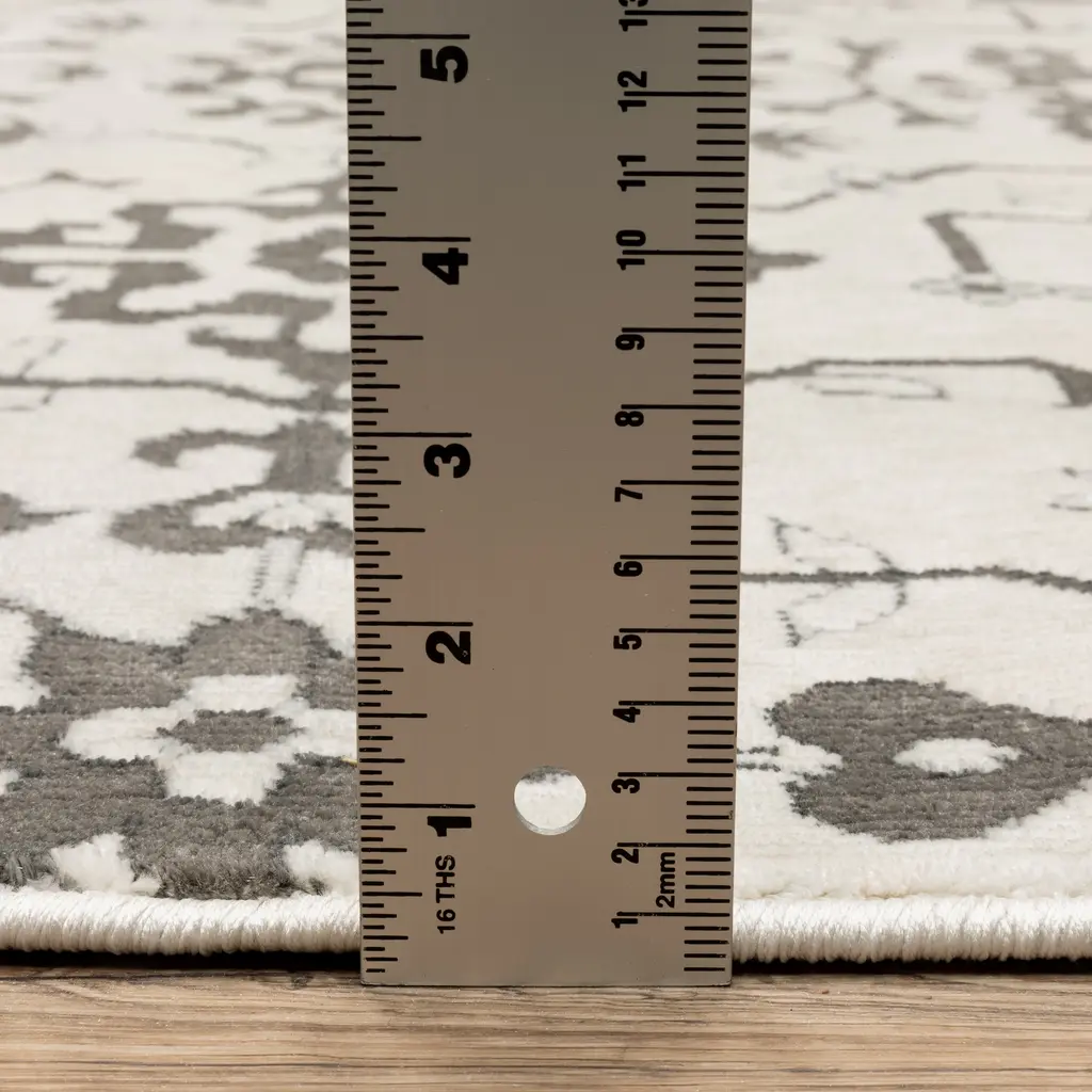 Immerse yourself in timeless beauty with the Ingram collection. Designed to elevate your home's decor with simple traditional patterns in multi-tonal shades. These rugs are power-loomed from multi-level, space-dyed, tri-color yarns that create a soft hand and high/low textural interest. With a palette spanning from soothing blues to vibrant cinnabar, Ingram's elegant designs will add sophistication to any room. Made in the USA.Features:Traditional style indoor area rugFeatures a borderless Persian inspired patternPower-loomed from 100% polyesterInherently stain, fade, wear-resistant for fuss-free maintenanceRug colors include shades of ivory, greyCleaning and Care:If spills occur, blot as much of the stain as possible with a clean cloth. Use a small amount of mild soap and water to clean the area. If needed, rug and carpet cleaners that are safe for synthetic materials may be used. As with anything, use sparingly and in a small, inconspicuous area first to test results before applying to the entire rug. Blot dry with clean cloth. Installation & Set-up:The use of a rug pad is recommended; initial creasing is normal, and these will generally fall out within a few days to a week; tightly reversing rolling the rug (pile side out) and leaving in warm area for several hours will aid in the removal of creases or lingering fold marks.
