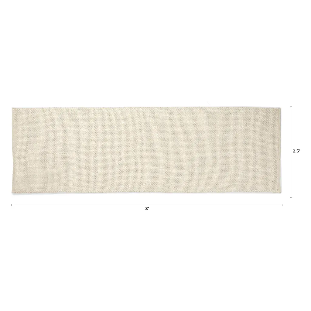 Like your favorite sweater, made better. Hand-woven wool is tightly looped into a sophisticated, soft runner for your floors. This is a perfect option for wood or stone floors and organic-chic, all-natural spaces. Our wool rugs are sourced from real, happy sheep. These sheep live the good life: rolling hills, sweet grass, and long naps. As such, our rugs occasionally have a little bit of that nap-grass stuck in their fibers. If you find a piece of grass, make a wish!