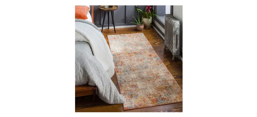 Characterized by a riveting rust, blue and cream palette, the Tiger Lily Runner adds a soft, contemporary touch to your home. This modern, machine woven rug is perfectly suited for a modern setting.
