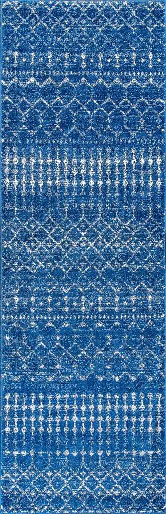 Inspired by Moroccan rugs, our geometric rug has a soft, low pile. The tribal-inspired pattern creates an all over abstract design with modern flair. Add some Bohemian style to your living room, dining room, bedroom, kitchen or entry with this easy-care rug.Features:• Power loomed with a 0.19" pile that''s soft and durable• The crisp blue and ivory color scheme adds coastal cottage flair to a modern tribal design• Made from easy-care polypropylene - just sweep, vacuum or hose down with mild soap and water• 100% Polypropylene• No backing, use of rug pad is recommended (sold separately)• Power Loomed in Turkey• Actual Dimension: 2 ft. 2 in. X 10 ft.• Color: Ivory/Blue• Thickness measures: 0.19 in.• Available in multiple sizes and/or colorsRug Care:• Vacuum regularly and spot clean as needed; avoid direct and continuous exposure to sunlight; use brushless vacuum; remove spills immediately; if liquid, blot with clean, undyed cloth by pressing firmly around the spill to absorb as much as possible; for hard to remove stains, professional rug cleaning is recommended; store in a dry, well ventilated area and rotate for consistent wear• Packing and shipping may cause temporary creases in rugs, which will flatten out after a week on the floor; to expedite the process, try back-rolling your rug before laying it down, and then allow ample time for the remaining creases to relax• Please Note: Due to differences in monitors, some rug colors may vary slightly. Lengths and widths may vary from the published dimensions. Patterns may vary slightly according to shape and size selected.About us:Style your floors with JONATHAN Y. By combining fine craftsmanship and design, this New York creative studio is bringing fashion to your floors. The collection mixes sustainable organic materials, vibrant colors and trend worthy styles to create JONATHAN Y''s distinctive catalog of rugs.