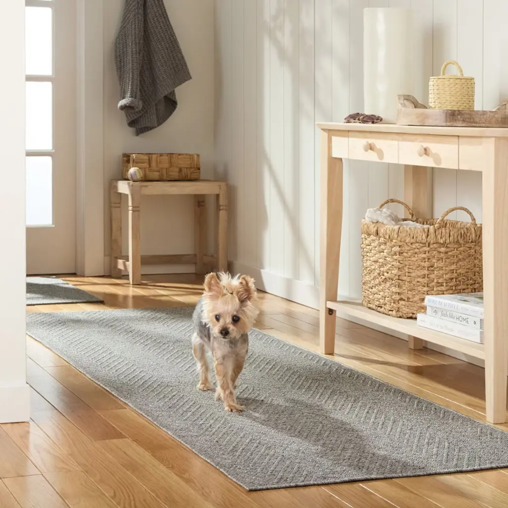 The Town & Country Basics Pax Herringbone Textured Solid Everwash® Machine Washable Area Rug is a perfect addition to any busy home. This hardwearing rug is ideal for high-traffic areas – use as a kitchen rug, living room rug, playroom rug, dining room rug, or entryway rug. Featuring a subtle herringbone textured design in beautiful solid colors, this versatile washable can be used in any indoor space. Made from recycled polyester and cotton with a safe non-slip backing that stays securely in place, this rug combines sustainability and stability for any home with kids or pets. Its foldable design makes it portable as an on-the-go picnic blanket or easy to store in the home. The low-profile design is ultra-durable and can be used under doorways and in entryways. With a non-shedding surface, this high-performance rug is ideal for people who suffer from allergies. It’s an ideal choice for households seeking both style and practicality.