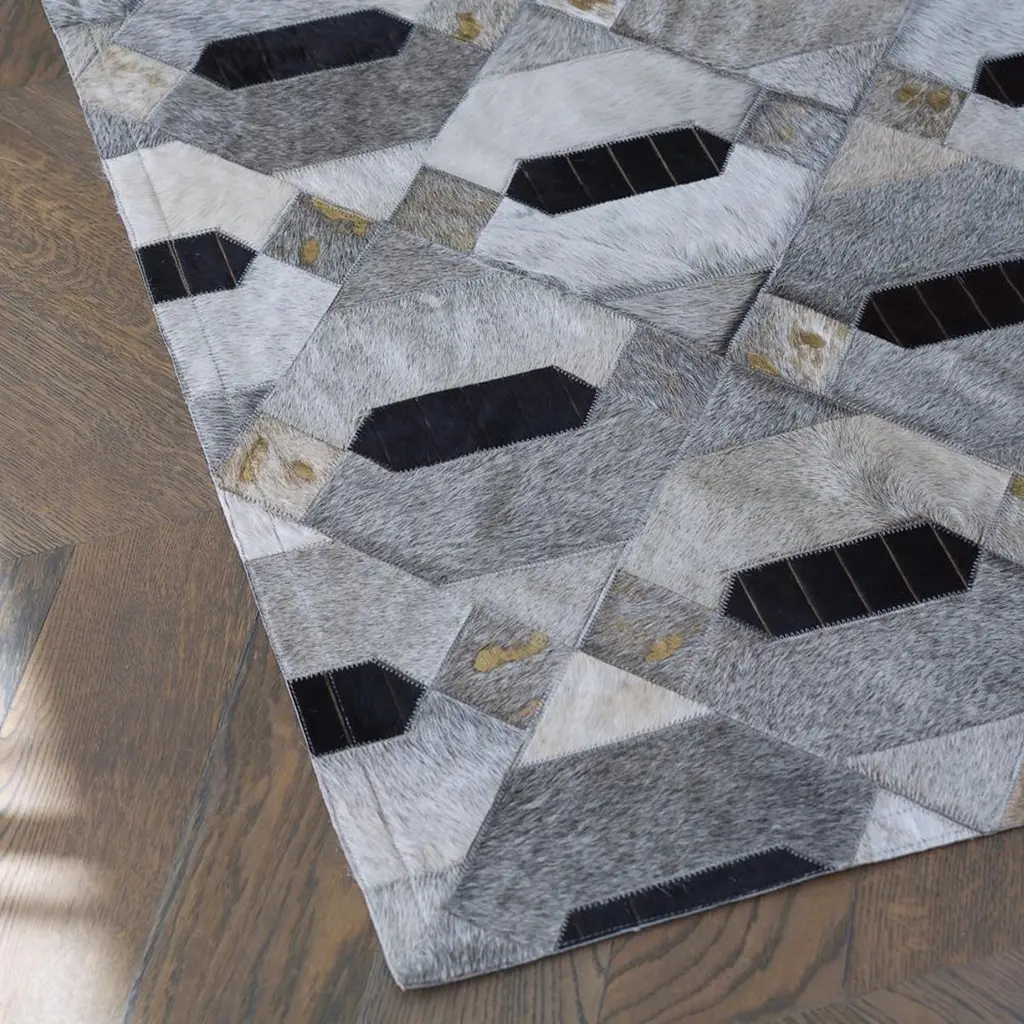 The Tribal inspired Linaje merge mid-century inspired gold accents with simple yet compelling geometric shapes and clean lines. The result is a bold statement rug evoking nostalgic glamour and an iconic Mad Men aesthetic.The Linaje is a magnificent statement piece for dining and living spaces and as always the Linaje can be customized to any size or shape and colour could also be incorporated. Gold accents can also be removed. Art Hide cowhide rugs are stitched together using commercial grade nylon thread and feature a branded ribbon edge finish. They are built to last a lifetime.Art Hide rugs are usually made to order. Please allow approximately 4 weeks for delivery.