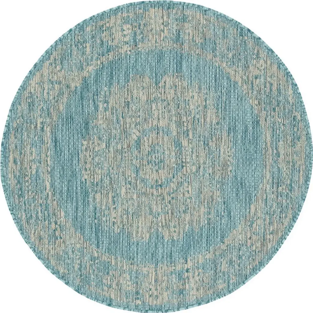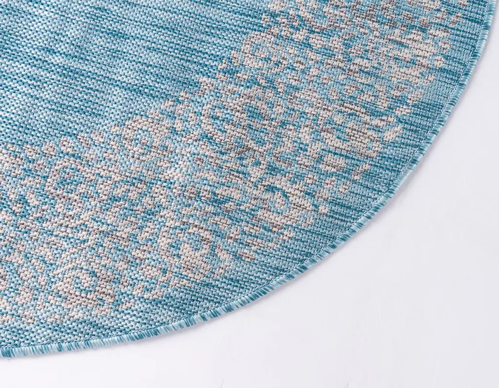 Unique Loom Aqua Blue Floral Border Outdoor Area Rug, Aqua Blue, Gray, 4' X 4'