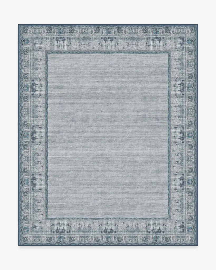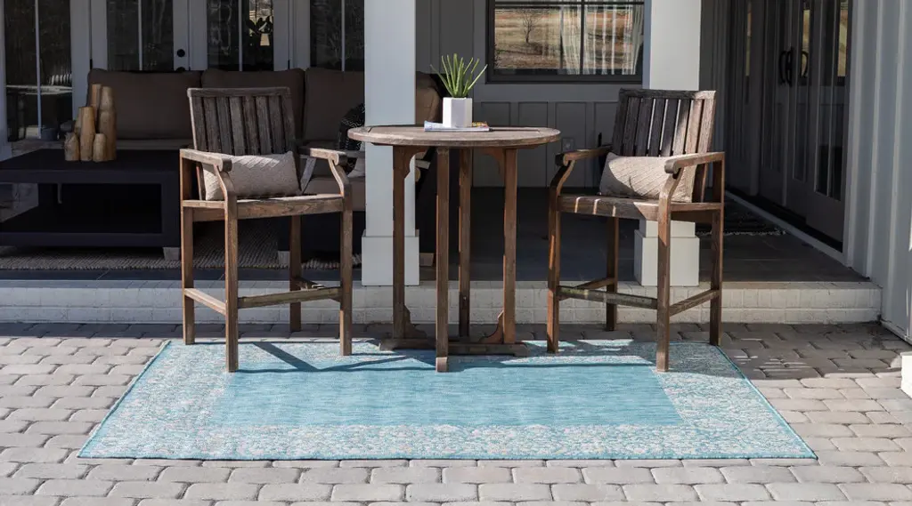 Unique Loom Aqua Blue Floral Border Outdoor Area Rug, Aqua Blue, Gray, 4'x6'