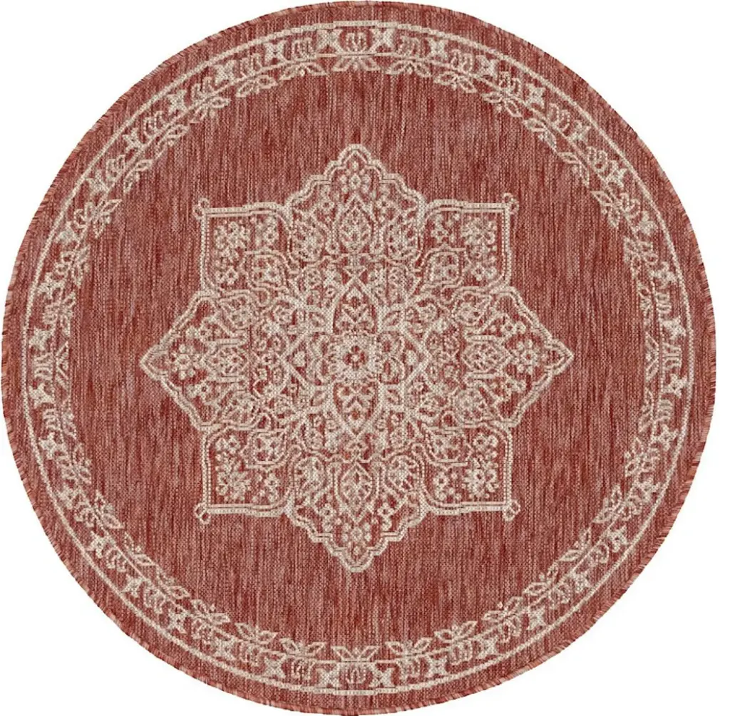 Unique Loom Aqua Blue Floral Border Outdoor Area Rug, Rust Red, Gray, 4' X 4'