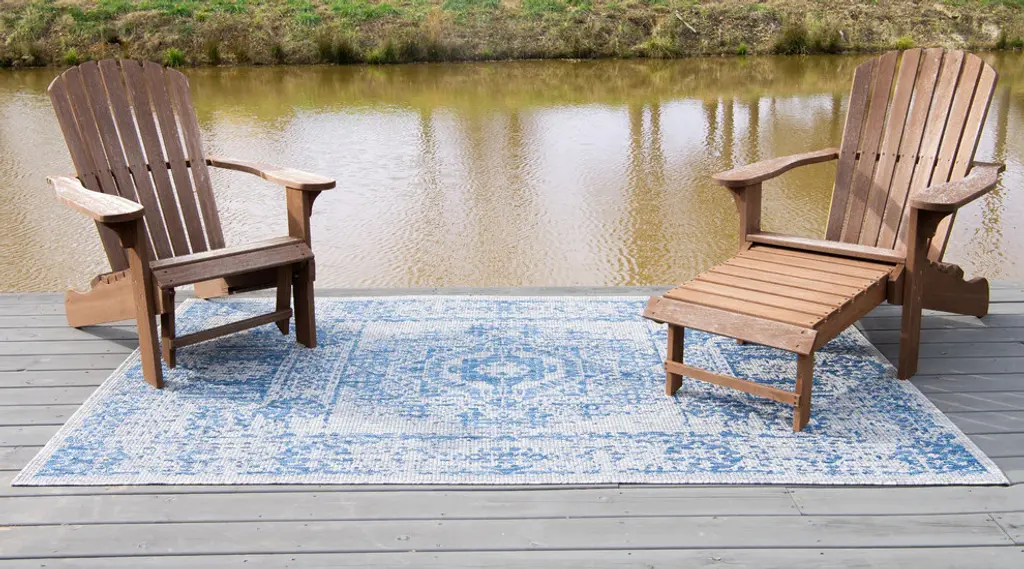 Unique Loom Aqua Blue Timeworn Outdoor Area Rug, Blue, Gray, 6' X 9'