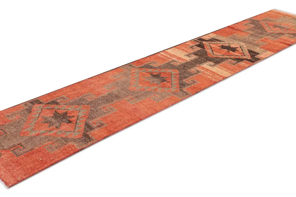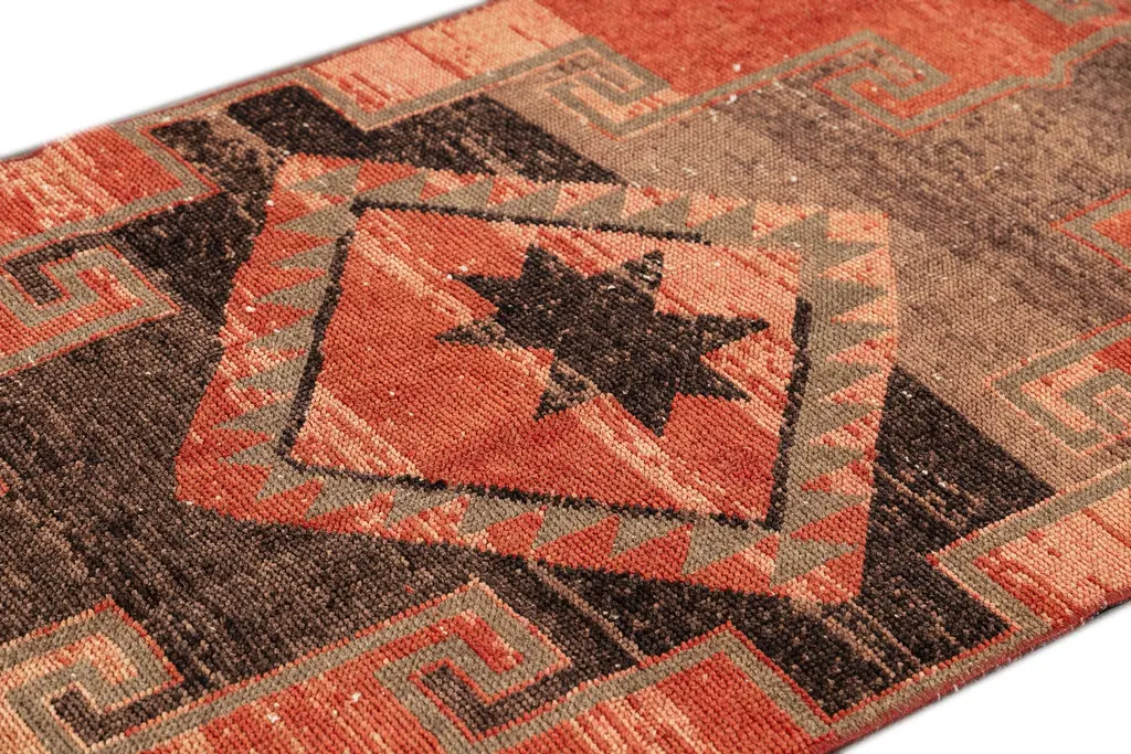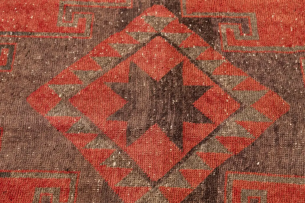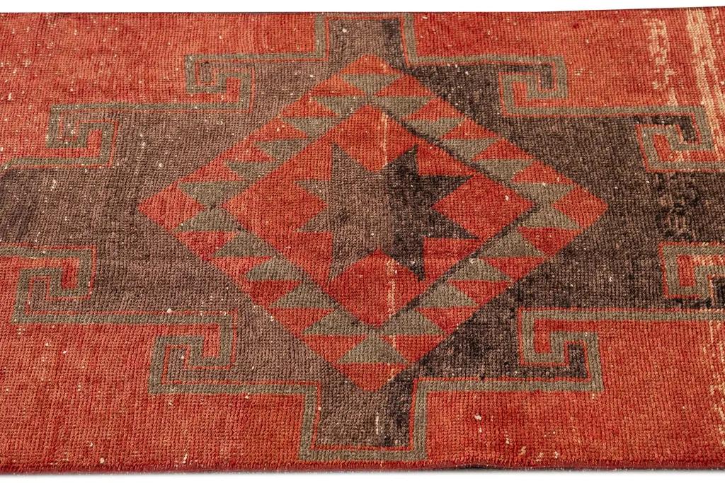 Beautiful antique Turkish Anatolian runner rug, hand knotted wool with a red field, black and brown accents in allover multi medallion design,circa 1930s.This rug measures 2' 6" x 12' 8".
