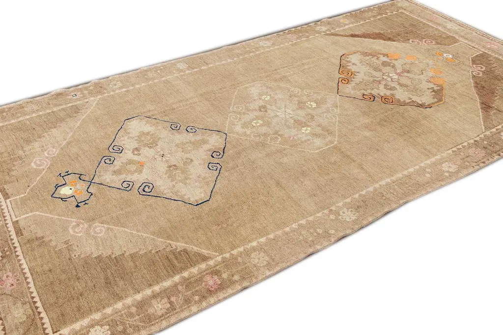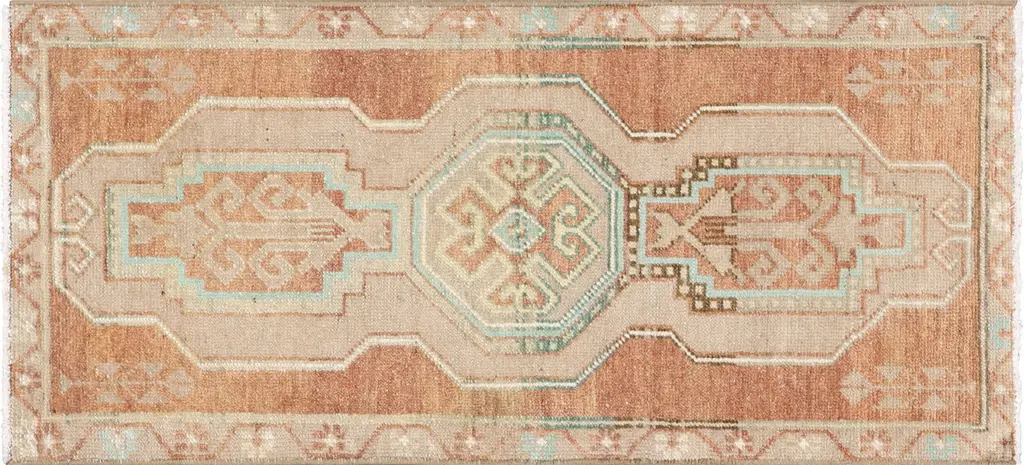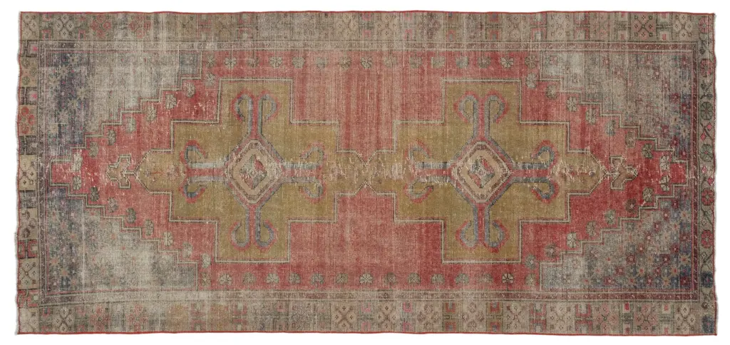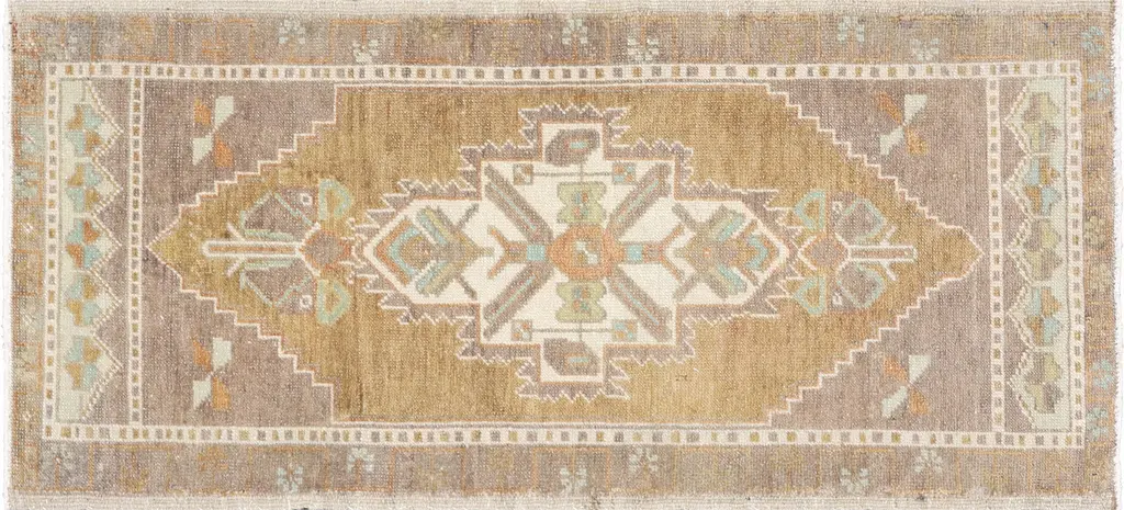 Vintage Turkish Geometric Runner Rug