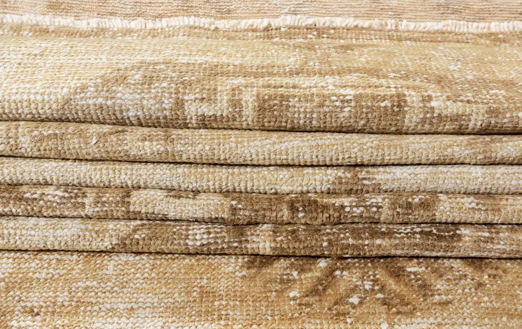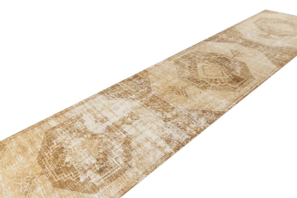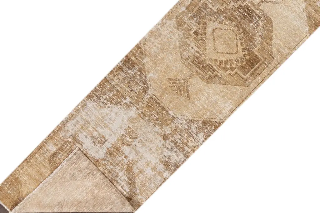 Beautiful Turkish Runner Rug, hand-knotted wool with an ivory field and beige and brown accents with an all over medallion design. This rug measures 2' 10" x 12' 9". Our Rugs are professionally cleaned before shipping.