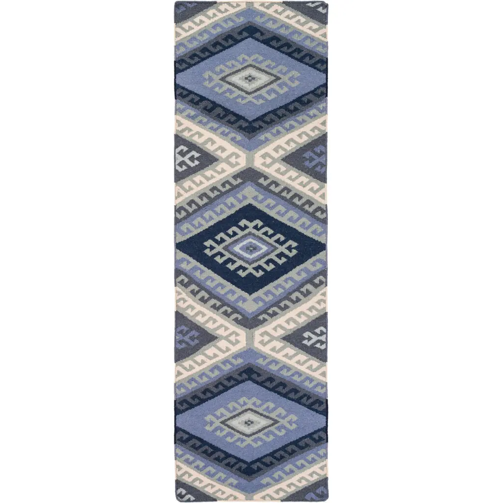 Wanderer 96 X 30 Inch Blue And Gray Runner, Wool