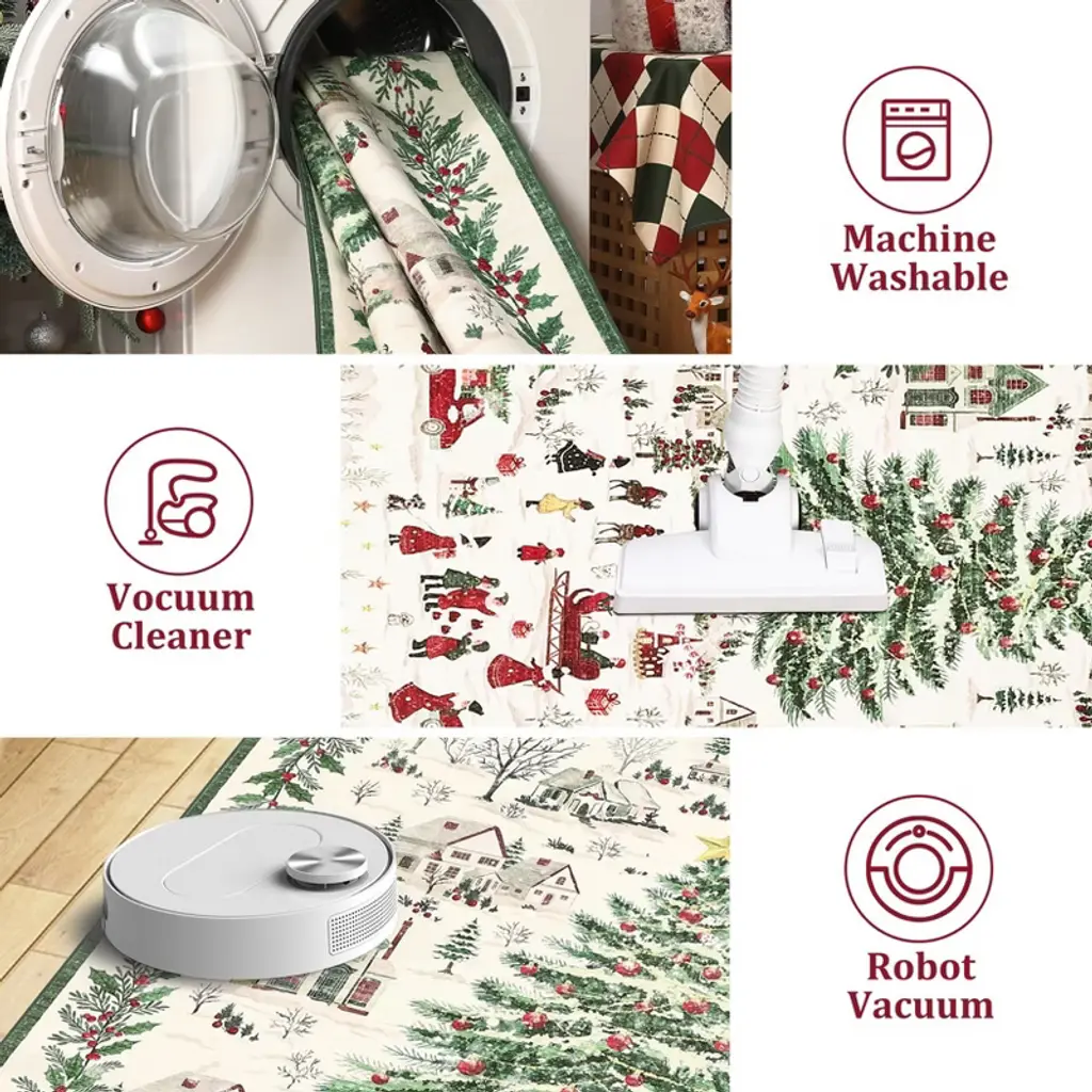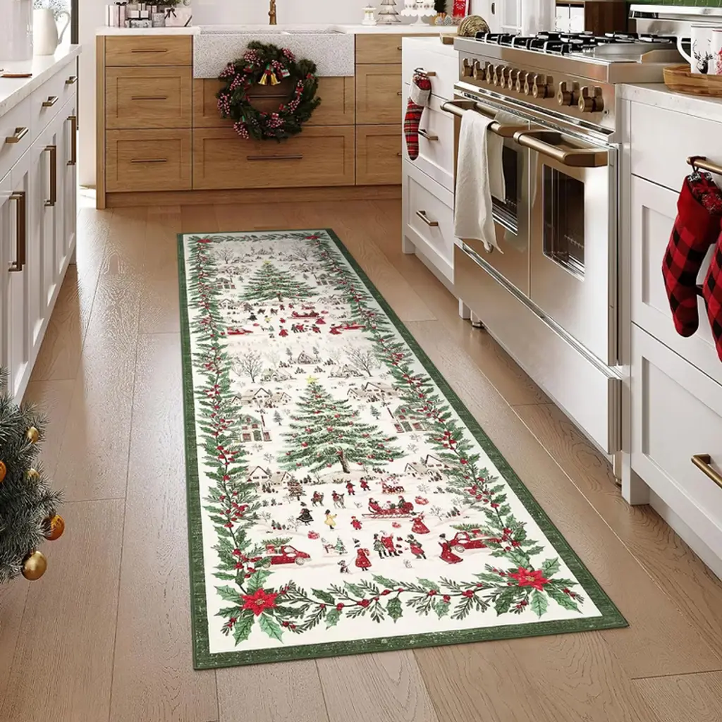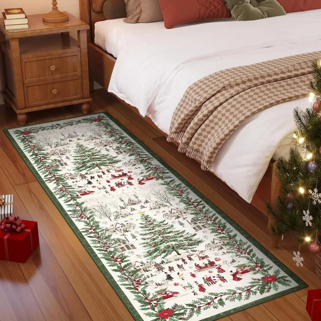 Bring festive cheer to any room with this soft, washable Christmas area rug—featuring charming holiday designs, non-slip backing, and easy-care durability for a cozy holiday season! Highlights at a Glance:- Washable Christmas rug with festive patterns - Soft low pile indoor carpet, easy to clean - Non-slip rug for living room or nursery safety - Stain-resistant, durable accent rug for holidays - Foldable floor mat fits under furniture easily Specification:Material: 100% PolyesterColor: BeigeSize: 2x6 ft/2x8 ft/2x10 ft/3x5 ft/4x6 ft/5x7 ft/6x9 ft/8x10 ft/9x12 ftApplication: Bedroom/Living Room/Hallway/Office/Nursery Packing List:1 x Area Rug1 x Instruction Manual Note:When area rug arrives, there may be temporary creases, you can roll the washable rug in the opposite direction and lay it flat on the floor while applying pressure to the carpet, the creases will disappear completely in a few days.Measure your space and choose the appropriate size. Ensure that the carpet can cover the area you want and coordinate with the surrounding furniture.