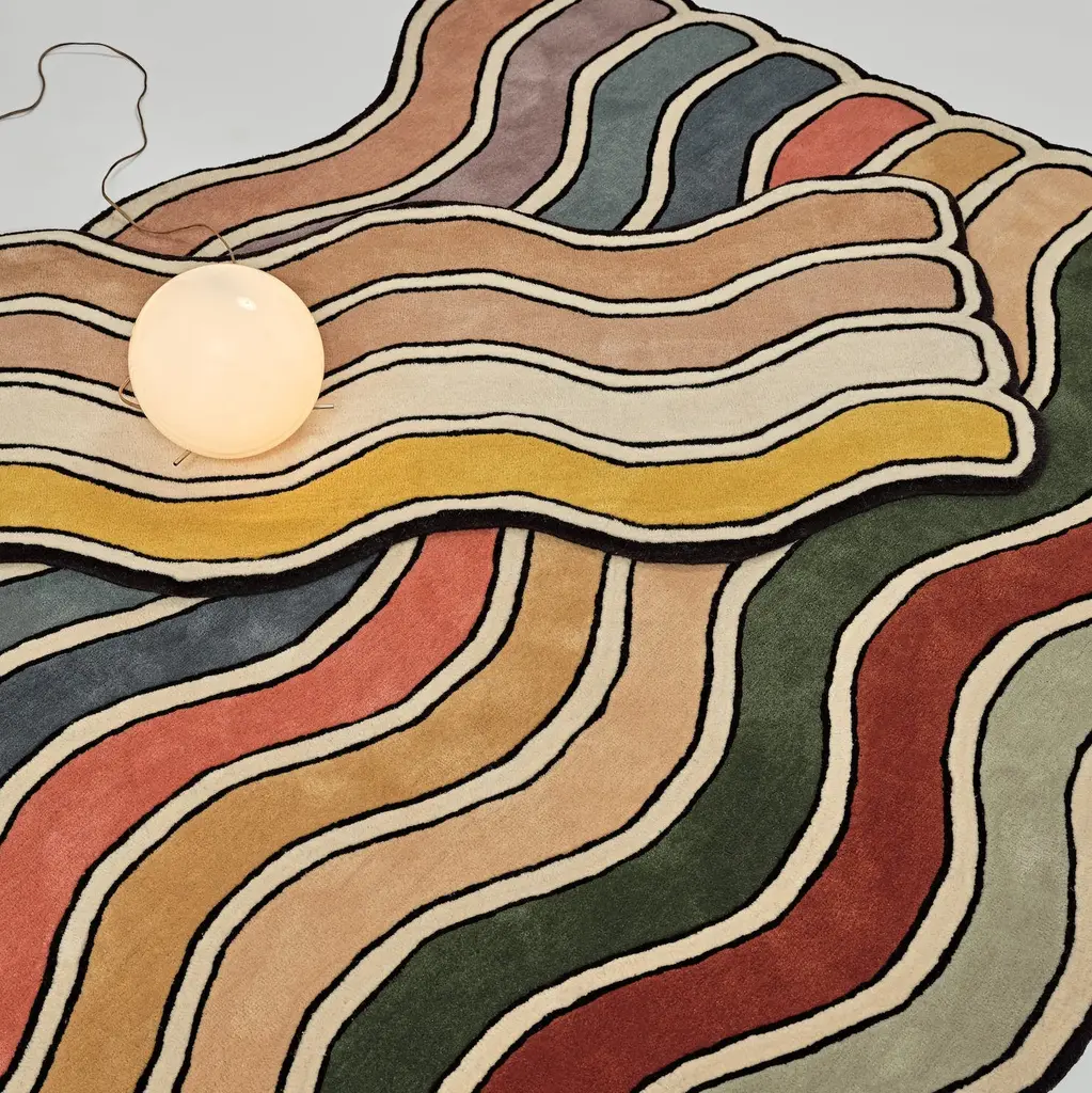 Designed to bring dynamic energy to hallways and narrow spaces, the Wavy Desert Runner from Pieces is a celebration of color and fluid motion. This stunning runner is handmade in India from hand-dyed, premium New Zealand wool for exceptional softness underfoot. The design features a series of undulating stripes that lead the eye forward, creating an exaggerated sense of movement. With its rich, sculptural texture from varied pile heights, it’s a luxurious and unforgettable way to make an entrance. Highlights: