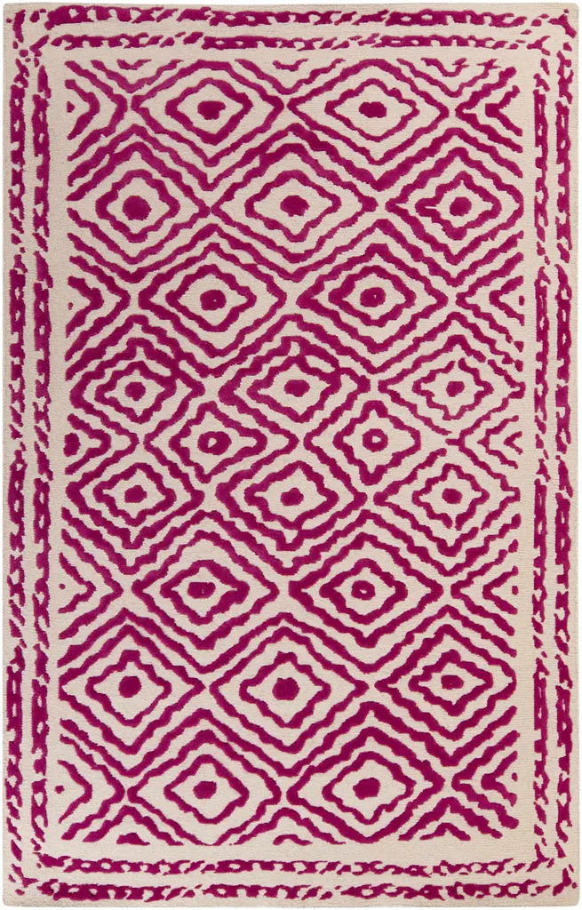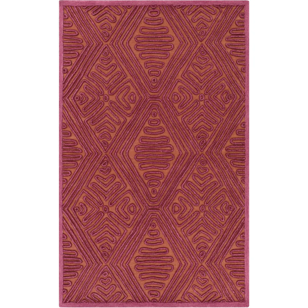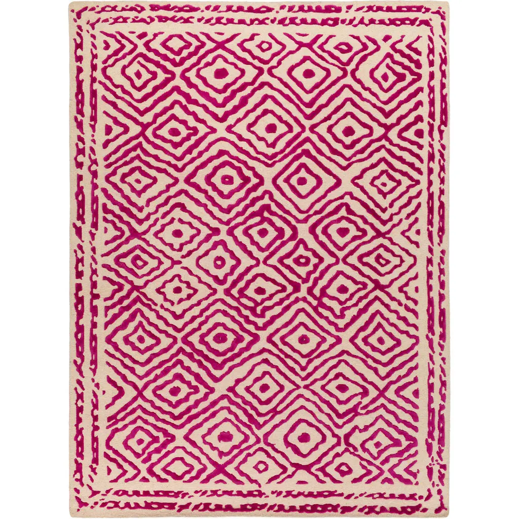 Collection: Westhill Colors: Fuchsia, Peach Construction: Hand Knotted Material: 100% Wool Pile: Medium Pile Pile Height: 0.39" Styles: Contemporary Made In: India Thickness: 0.47" Price Range: $$$$$ (Affordable)