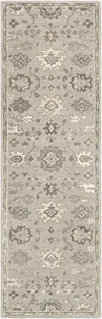 Collection: Willimantic Colors: Taupe, Charcoal, Black, Tan, Beige Construction: Hand Tufted Material: 100% Wool Pile: Medium Pile Pile Height: 0.39" Styles: Traditional Backing: Canvas Made In: India Thickness: 0.87" Price Range: $$$$$ (Affordable)