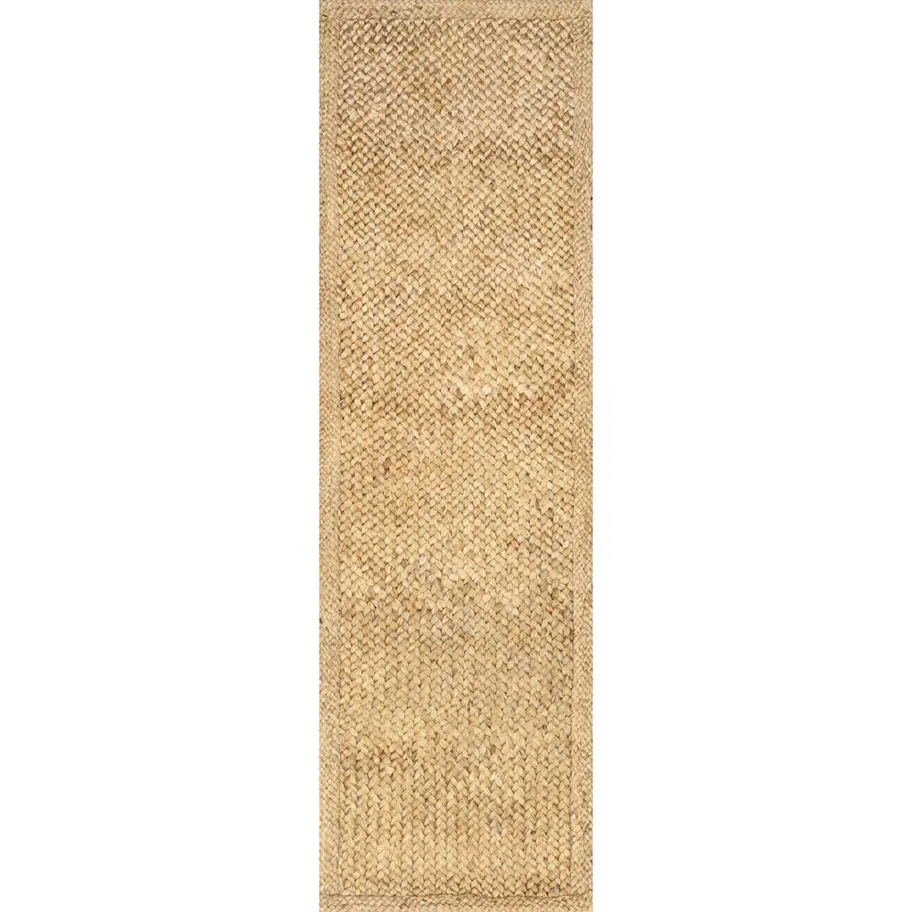 Natural fibers are one of the key elements of the Willow Bordered Jute Rug. With its handmade details and intricate border, this rug's quality is evident. Add it to your space for an elevated, nature-inspired look. You'll be so glad you did. 100% Jute, made in IndiaThis durable yet stylish natural fiber rug is perfect for your bedroom, living room, dining room, kitchen, or hallwayThis handmade rug has a .25" thickness allows for convenient placement in entryways and underneath furnitureVacuum your jute rug 1-2 times a week on the lowest power level or with handheld attachment and spot clean as needed with mild detergentWe recommend using a rug pad to provide extra cushioning and to prevent any possible slipping and sliding on your flooring. Rug pads serve as protective layering piece for your floor and your rug from any wear and tear, extending the life of your rugSprouting and debris are common due to being made from plant fibers, trim any loose threads with scissors and regularly clean under your rug