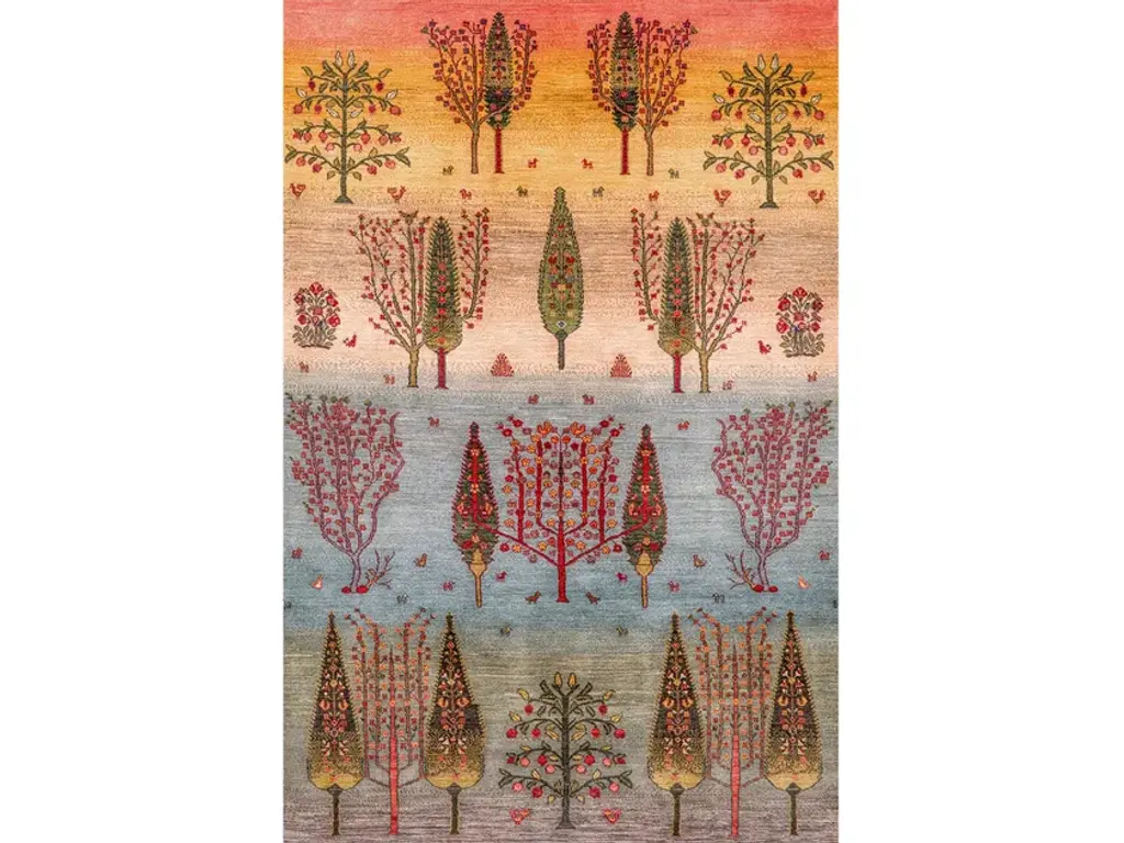 Woodland 1 runner is a rectangular wool rug.Zollanvari Super Fine Gabbeh quality.Bulurbaft, the most ‘classical’ design carpets, are woven in the province of Kurdistan. ‘Bulur’ is Farsi for ‘brilliant’ or ‘precise’, an apt definition for these finely woven carpets that are similar to traditional Bijar carpets in quality and weave. The designs draw inspiration from old Senneh carpets, but refreshed and updated the colour palette to suit modern sensibilities. The Luribaft carpets are knotted by Luri tribesmen or by Ghashgha’i women married into the tribe. The designs are passed down from generation to generation or are recreated using ancient Luri ornaments as templates, since some archaic motifs had vanished from their repertoire. Until the 1950s the Luri tribes worked exclusively with vegetable dyes. The emergence of chemical dyes, mainly from Germany, made it easier to dye wool, but led to a loss of the intrinsic character of these fine carpets. In the 1980s Zollanvari forced a return to the ancient vegetable dyeing techniques and thereby revived the allure of these carpets.