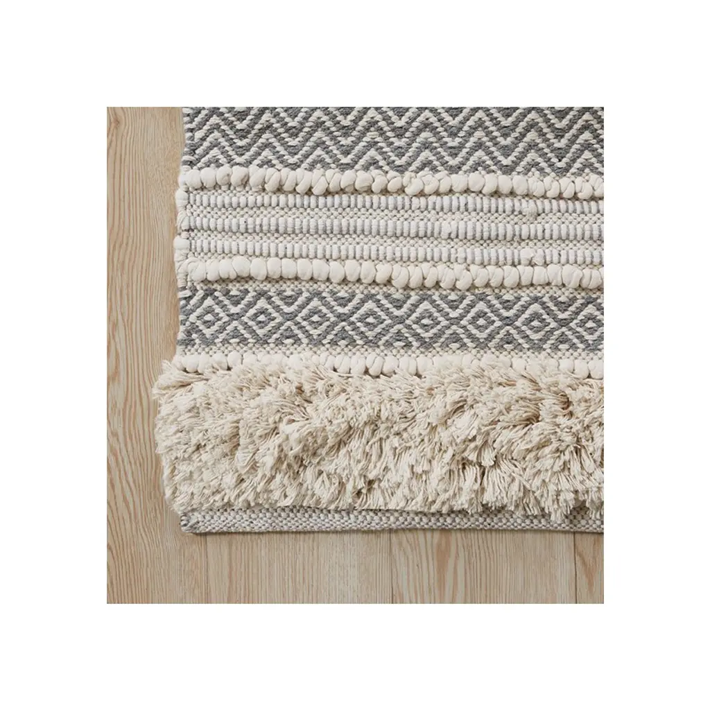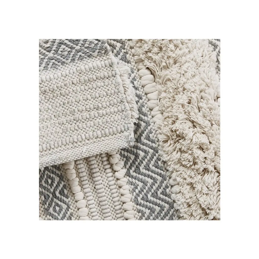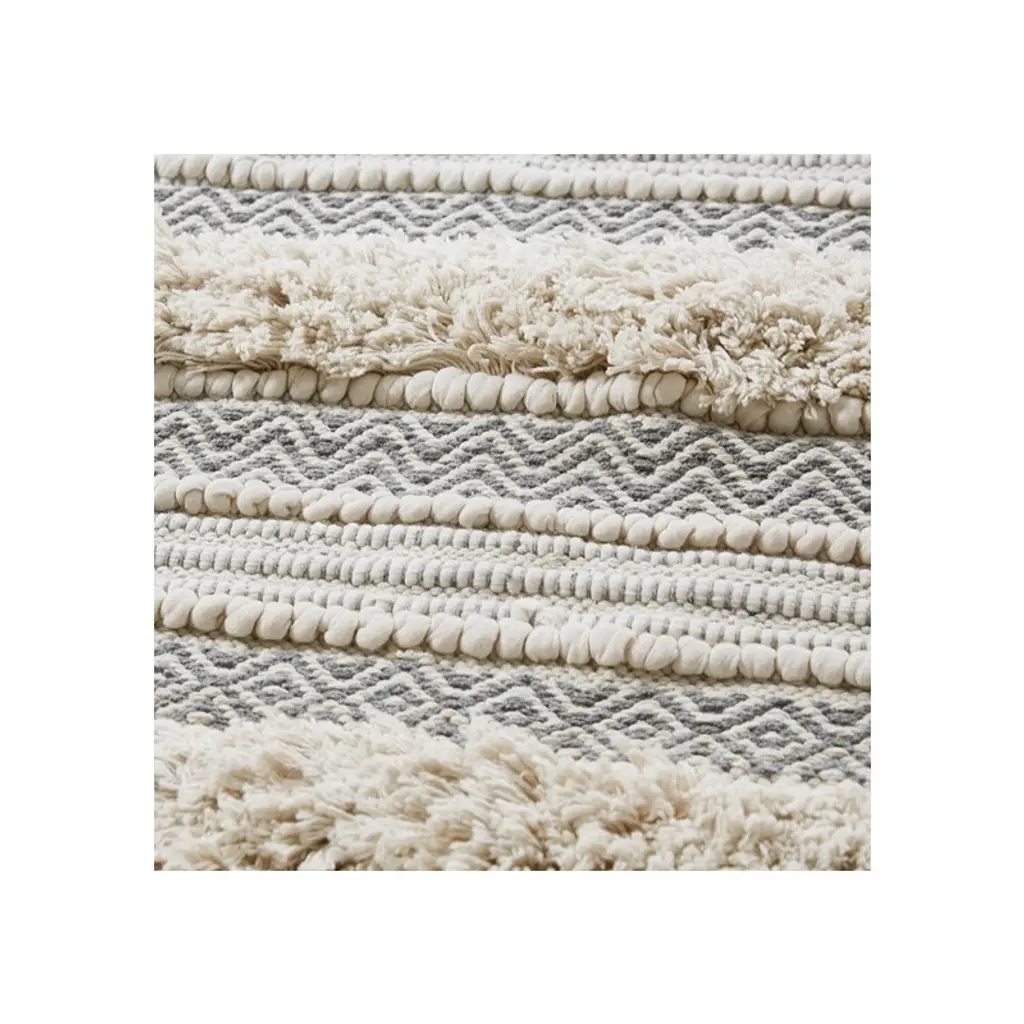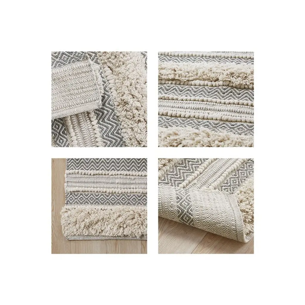 Description Globally inspired with an artisan touch, the INK+IVY Asher Woven Texture Stripe Bath Rug is the perfect update to refresh your bathroom decor. This hand-woven bath rug features a combination of beautiful patterns, shaggy textures, and fabric techniques in a vertical stripe layout, for a stylish Boho look and feel. The shaggy woven texture is featured in a solid light light natural hue, which alternates between a grey geo pattern and fabric manipulation technique to create soft dimension and a unique design. Machine washable for easy care; this rug is also finished with a Non-skid resistance latex backing to help keep the rug in place throughout the day. Complete the look of this New INK+IVY bath rug collection with any of our coordinating INK+IVY Shower Curtain, Bedding, and Window Collections, available and sold separately. Product Details 22x58in 1 Bath Runner:22inW x 58inL Material 89% cotton 6% rayon 4% polyester and 1% acrylic bathrug with hot melt backing 180gsf