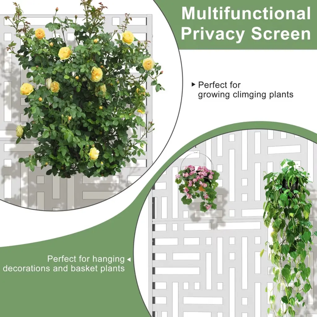 This freestanding decorative screen is designed to enhance your deck, balcony, patio, or any outside area like a lawn or garden. Crafted for durability and style, it serves as an elegant privacy fence panel, adding a touch of sophistication to your environment while providing seclusion. Its robust construction ensures it can withstand the elements, making it ideal for year-round use. Whether you’re looking to create a private oasis or simply add a decorative element to your space, our Metal Privacy Screen is the perfect choice. Upgrade your outdoor or indoor area with this functional and visually appealing privacy solution.