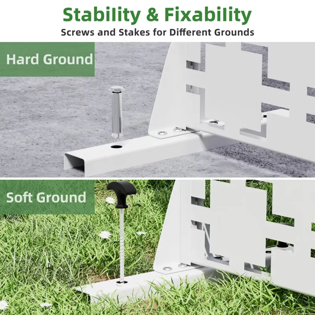This freestanding decorative screen is designed to enhance your deck, balcony, patio, or any outside area like a lawn or garden. Crafted for durability and style, it serves as an elegant privacy fence panel, adding a touch of sophistication to your environment while providing seclusion. Its robust construction ensures it can withstand the elements, making it ideal for year-round use. Whether you’re looking to create a private oasis or simply add a decorative element to your space, our Metal Privacy Screen is the perfect choice. Upgrade your outdoor or indoor area with this functional and visually appealing privacy solution.