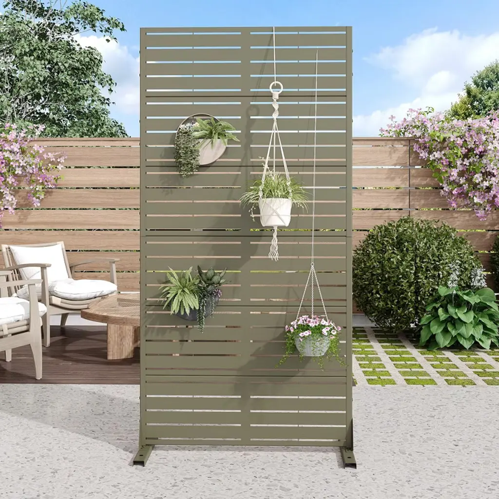 This freestanding decorative screen is designed to enhance your deck, balcony, patio, or any outside area like a lawn or garden. Crafted for durability and style, it serves as an elegant privacy fence panel, adding a touch of sophistication to your environment while providing seclusion. Its robust construction ensures it can withstand the elements, making it ideal for year-round use. Whether you’re looking to create a private oasis or simply add a decorative element to your space, our Metal Privacy Screen is the perfect choice. Upgrade your outdoor or indoor area with this functional and visually appealing privacy solution.