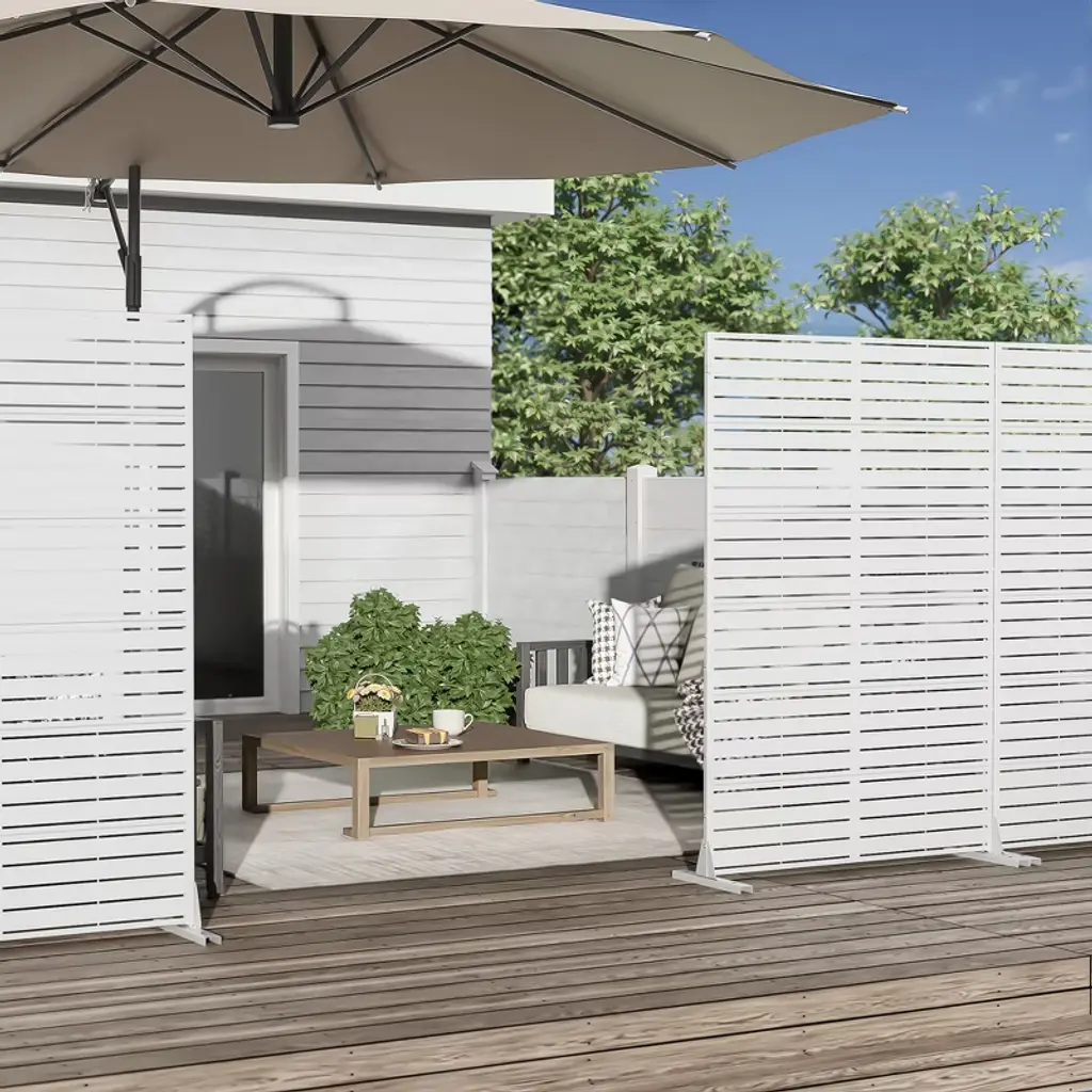 This freestanding decorative screen is designed to enhance your deck, balcony, patio, or any outside area like a lawn or garden. Crafted for durability and style, it serves as an elegant privacy fence panel, adding a touch of sophistication to your environment while providing seclusion. Its robust construction ensures it can withstand the elements, making it ideal for year-round use. Whether you’re looking to create a private oasis or simply add a decorative element to your space, our Metal Privacy Screen is the perfect choice. Upgrade your outdoor or indoor area with this functional and visually appealing privacy solution.