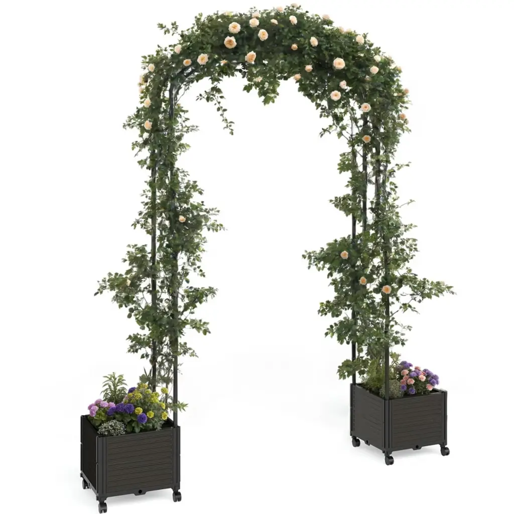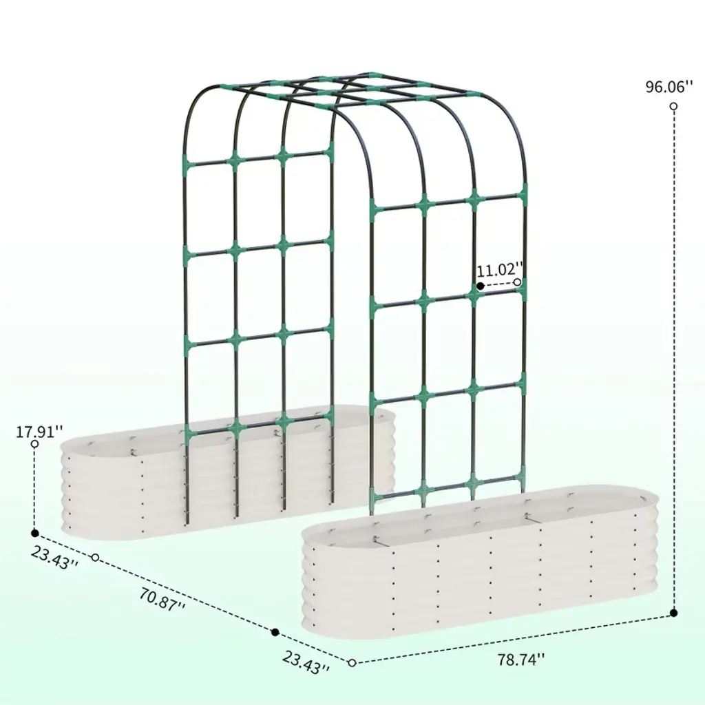 1 Set(2pcs Raised Garden Bed With Arch Trellis), Durable Steel Construction, For Climbing Plants And Outdoor Gardening,beige