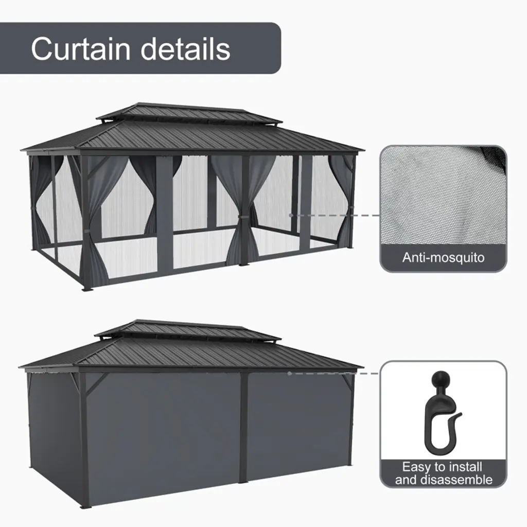 12'*20'hardtop Gazebo - Outdoor Metal Pavilion With Galvanized Steel And Aluminum Frame, Double Roof Canopy With Netting And Curtains -Ideal For Patio