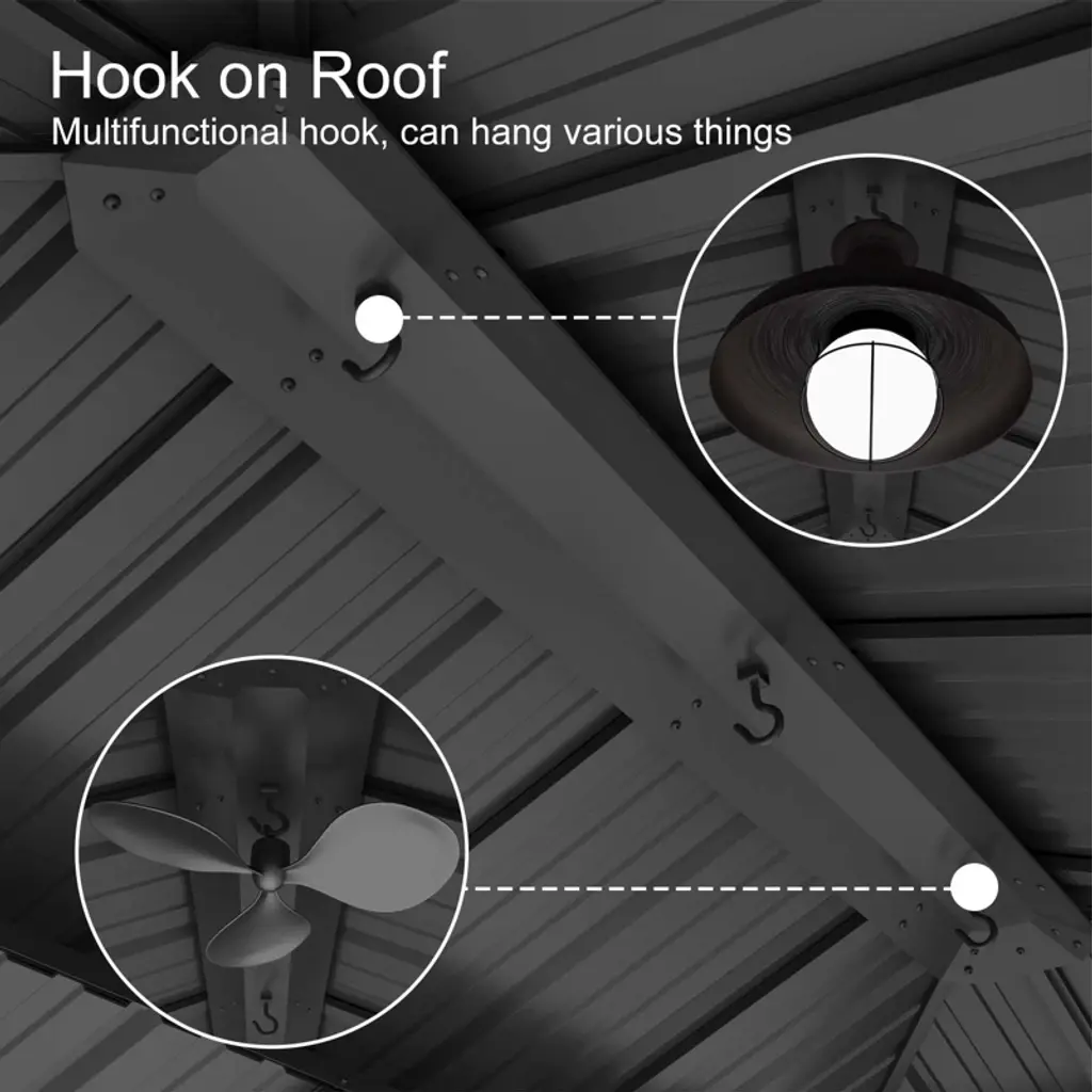 12x20 Hardtop Gazebo with Curtains - Outdoor Metal Pavilion with Double Roof, Galvanized Steel Frame, Netting for Patio, Backyard, DeckProduct DescriptionRedefine Your Outdoor Living with a Durable and Versatile All-Weather SanctuaryTransform your patio, deck, or backyard into a sophisticated and functional outdoor retreat with the TROPOW 12'x20' Hardtop Gazebo. This meticulously engineered metal pavilion is designed not just as a shade structure, but as a permanent, all-weather sanctuary for year-round enjoyment. Crafted from a robust combination of galvanized steel and aluminum, it offers unparalleled durability against the elements. The innovative double-roof design, complete with an efficient gutter system, ensures superior weather protection and ventilation. Enhanced with dual-layer curtains for privacy and insect protection, this gazebo provides a comfortable, bug-free, and private space for dining, entertaining, or simply relaxing. Whether you're seeking shelter from the sun, light rain, or pesky insects, this modern gray gazebo is the ultimate investment in enhancing your home's outdoor living experience.Uncompromising Durability for Year-Round UseBuilt to be a lasting fixture in your garden, this gazebo's strength lies in its high-quality materials and intelligent engineering. Sturdy Metal Framework: The core structure is constructed from a hybrid frame of galvanized steel and powder-coated aluminum. This combination provides exceptional strength and load-bearing capacity while ensuring remarkable resistance to rust and corrosion. The galvanized steel offers a solid foundation, and the aluminum components add durability without excessive weight. Triangular Architecture for Enhanced Stability: Key sections of the frame incorporate a triangular design, a principle known for its superior structural integrity. This design significantly enhances the gazebo's stability, enabling it to better withstand wind loads and ensuring it remains a sturdy, wobble-free shelter for years to come. Weatherproof Hardtop Roof: Unlike fabric canopies that degrade in the sun and rain, the solid hardtop roof is engineered to be completely weatherproof, fade-proof, and rust-proof. It provides permanent protection from UV rays and rain, eliminating the need for seasonal replacement and ensuring your gazebo looks beautiful season after season. Enhanced Comfort with Privacy and Insect ProtectionCreate a secluded haven in your own backyard with the included curtain system, designed for both comfort and convenience. Functional Hooks for Convenience: The curtains are fitted with hooks, providing a handy solution for hanging small items like lanterns, planters, or tools, keeping your living space organized and personalized. Intelligent Design for Superior Weather ManagementThis gazebo goes beyond basic shelter with design features that actively manage rain and airflow for a more comfortable environment. Efficient Roof Drainage System: The gazebo features a sloped roof design with a unique integrated gutter system. When it rains, water is channeled along the roof's edge and directed down the aluminum columns, effectively guiding it away from the seating area and the base of the structure. This prevents water from pooling on the roof or dripping through the center, keeping you and your guests dry and minimizing water-related wear on the frame. Double-Layer Roof for Optimal Ventilation: The double-roof design is not merely aesthetic; it serves a critical functional purpose. The gap between the two roof layers facilitates continuous air circulation, allowing hot air to rise and escape. This prevents the interior from becoming stuffy and hot, even when the curtains are fully closed. This natural ventilation system ensures a cool and comfortable atmosphere underneath on warm days. Specifications Brand: TROPOW Frame Material: Metal (Galvanized Steel and Aluminum) Roof Material: Hardtop (Double Layer) Color: Gray Shape: Rectangular Style: Modern Water Resistance Level: Waterproof Ultraviolet Light Protection: Yes