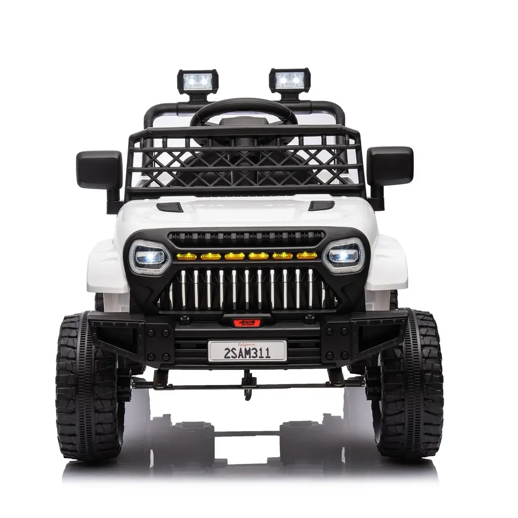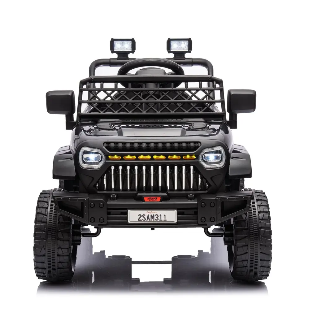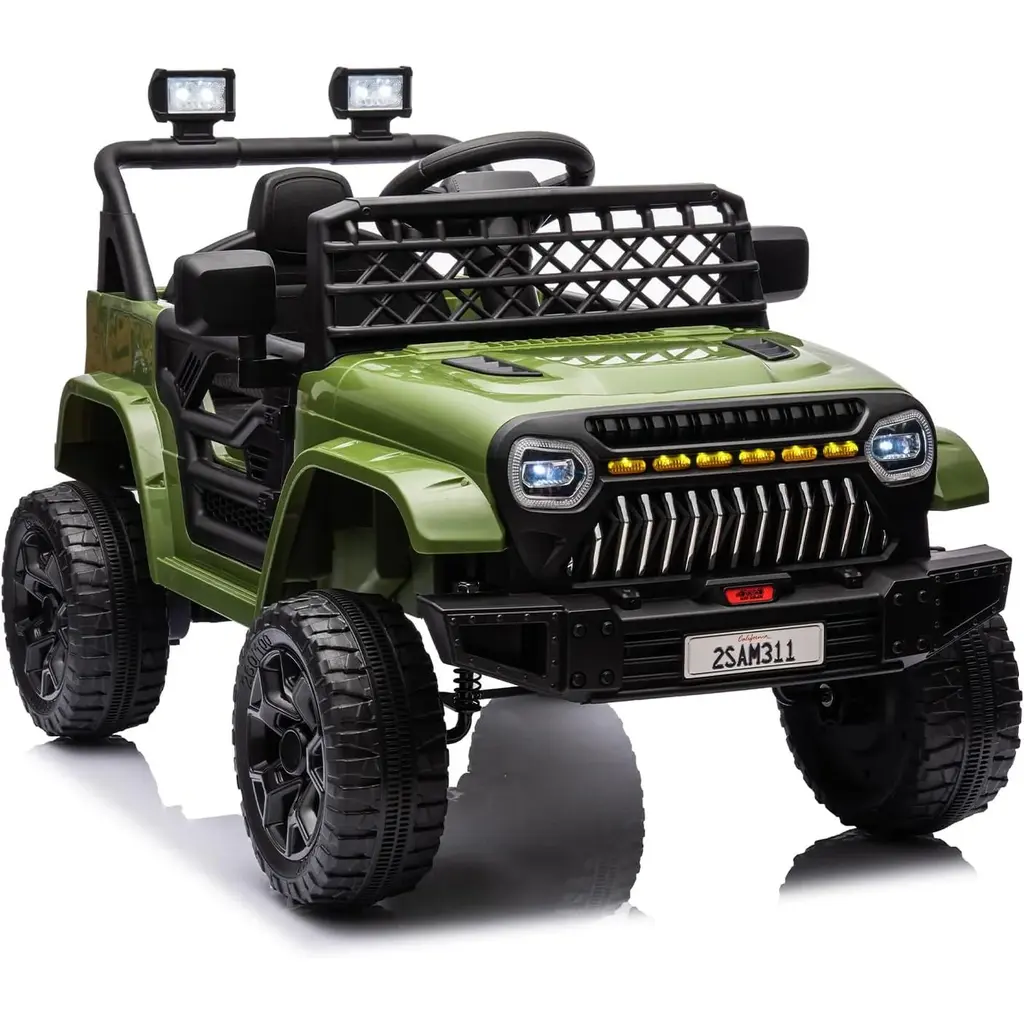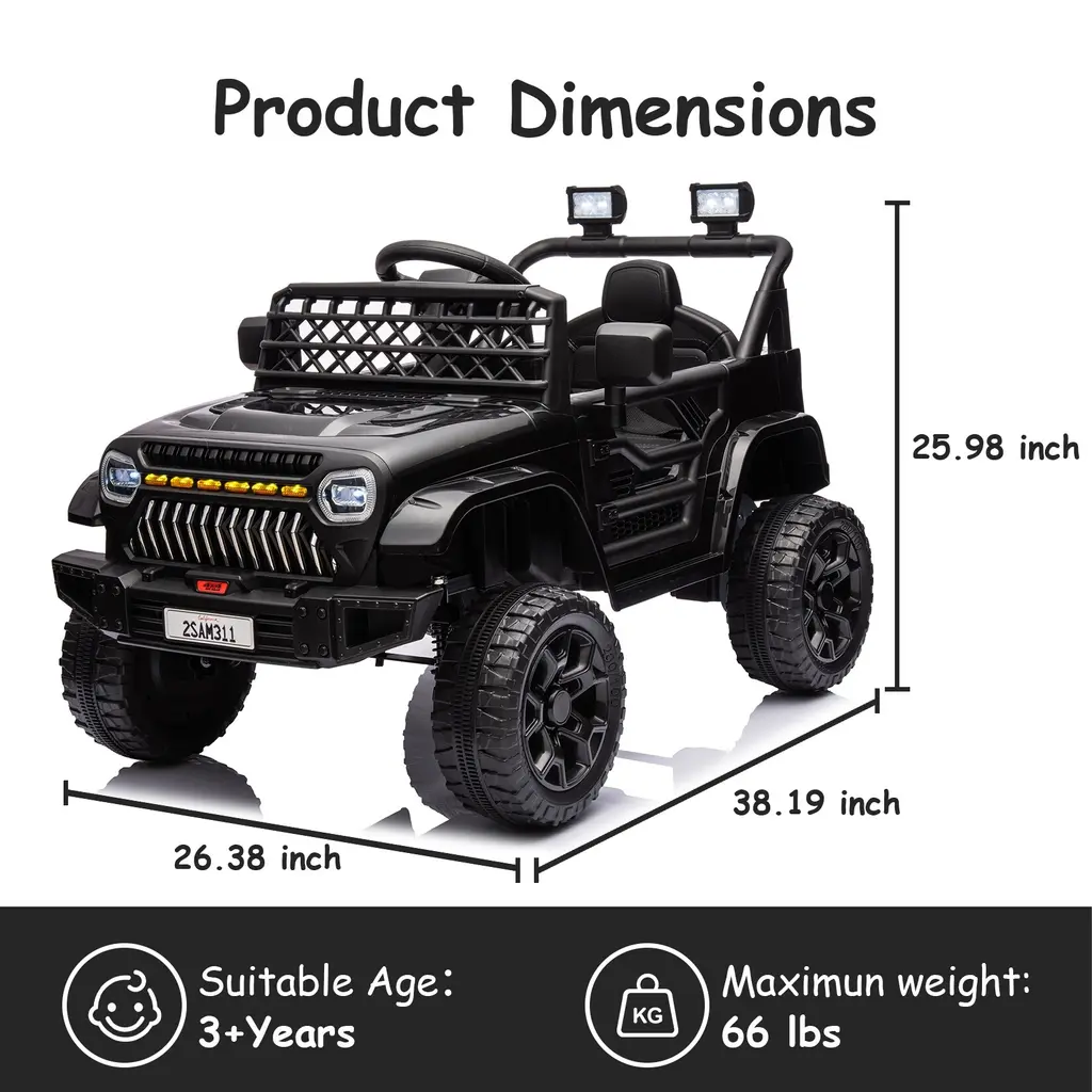 Realistic Driving Experience: This electric truck features bright LED headlights, lockable doors, and a grid windshield for an authentic off-road style, providing children with a true driving experience. The one-button start makes it easy to operate, while the adjustable seat belt ensures the safety of your kids. With four stable spring suspension systems, your child will enjoy a smooth and comfortable ride in this kids' ride-on truck.Superior Performance: Equipped with a 12V rechargeable battery and 25W*2 powerful motor, this battery-powered truck offers up to 40 minutes of ride time and robust power for an exciting play experience. The power display on the console allows parents to monitor remaining power levels at any time. The wear-resistant, anti-slip tires enable the vehicle to navigate various terrains effortlessly, from indoor floors to grassy areas, providing children with unrestricted play options.Dual Driving Modes: Featuring both parent remote control and child manual operation modes, this power wheel caters to kids of different ages. Children can independently drive using the electric pedals and steering wheel, experiencing the thrill of driving. Parents have the option to control the car's direction and speed via the 2.4GHz full-function remote control, ensuring maximum safety while enjoying quality time with their children.Interactive Music Features: With built-in music and a multi-functional music player, this electric vehicle offers educational and enjoyable music options for kids. Furthermore, the MP3, USB, and Bluetooth functions enable connectivity with external music devices, allowing for a personalized music experience that enhances the fun of children's driving adventures.Perfect Gift Choice: Crafted from safe materials and suitable for children aged 3 and above with a maximum weight capacity of 66 lbs, this stylish and fun kids' ride-on truck is an excellent gift option for special occasions like birthdays, Christmas, New Year, Children's Day, and more. It is sure to bring joy, excitement, and memorable playtime moments to kids and grandchildren, making it a cherished present.