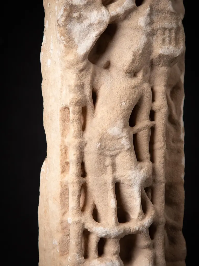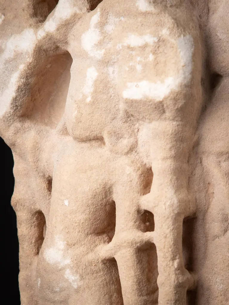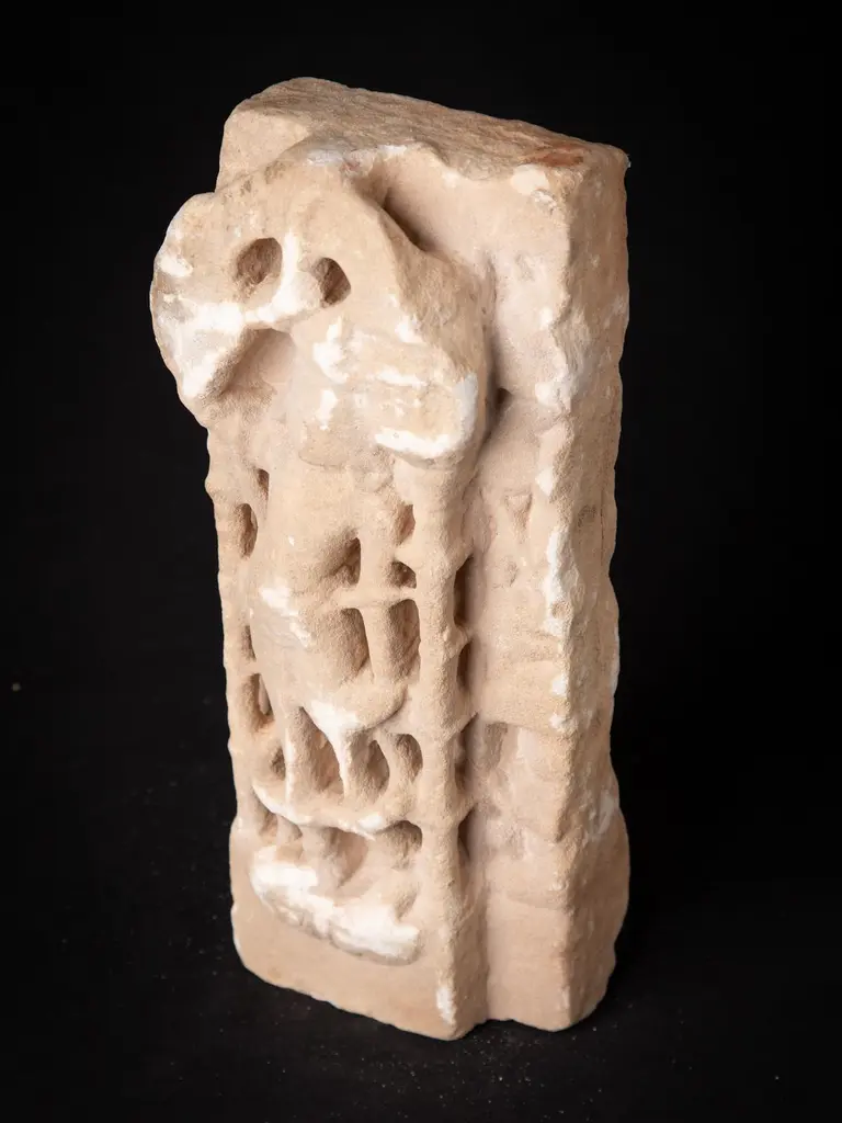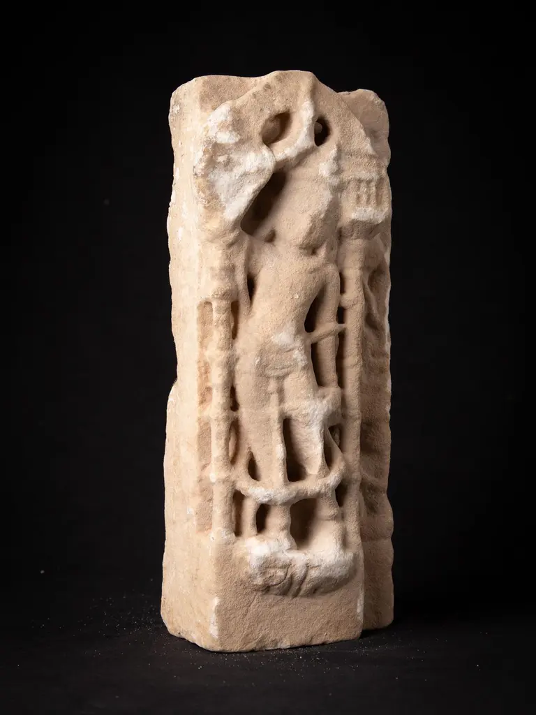 Antique marble statue from Jain temple from India, 14th centuryMaterial : marble32,5 cm high14,2 cm wide and 9,5 cm deep14th centuryOriginating from a temple in RajasthanIndra as a carrier of a flyfan. Is a permanent companion of Jina imagesOriginating from IndiaNr: IND-2-A